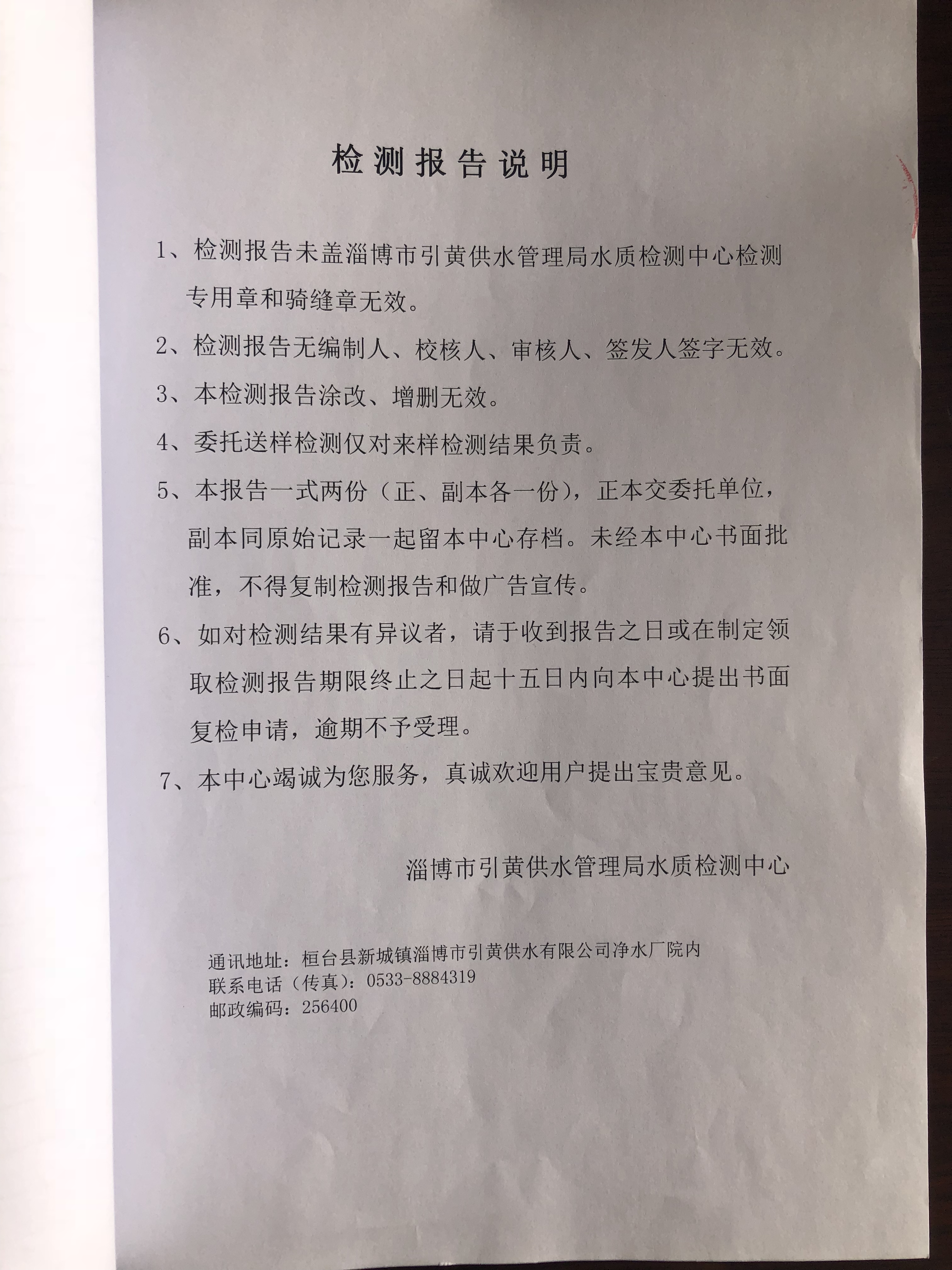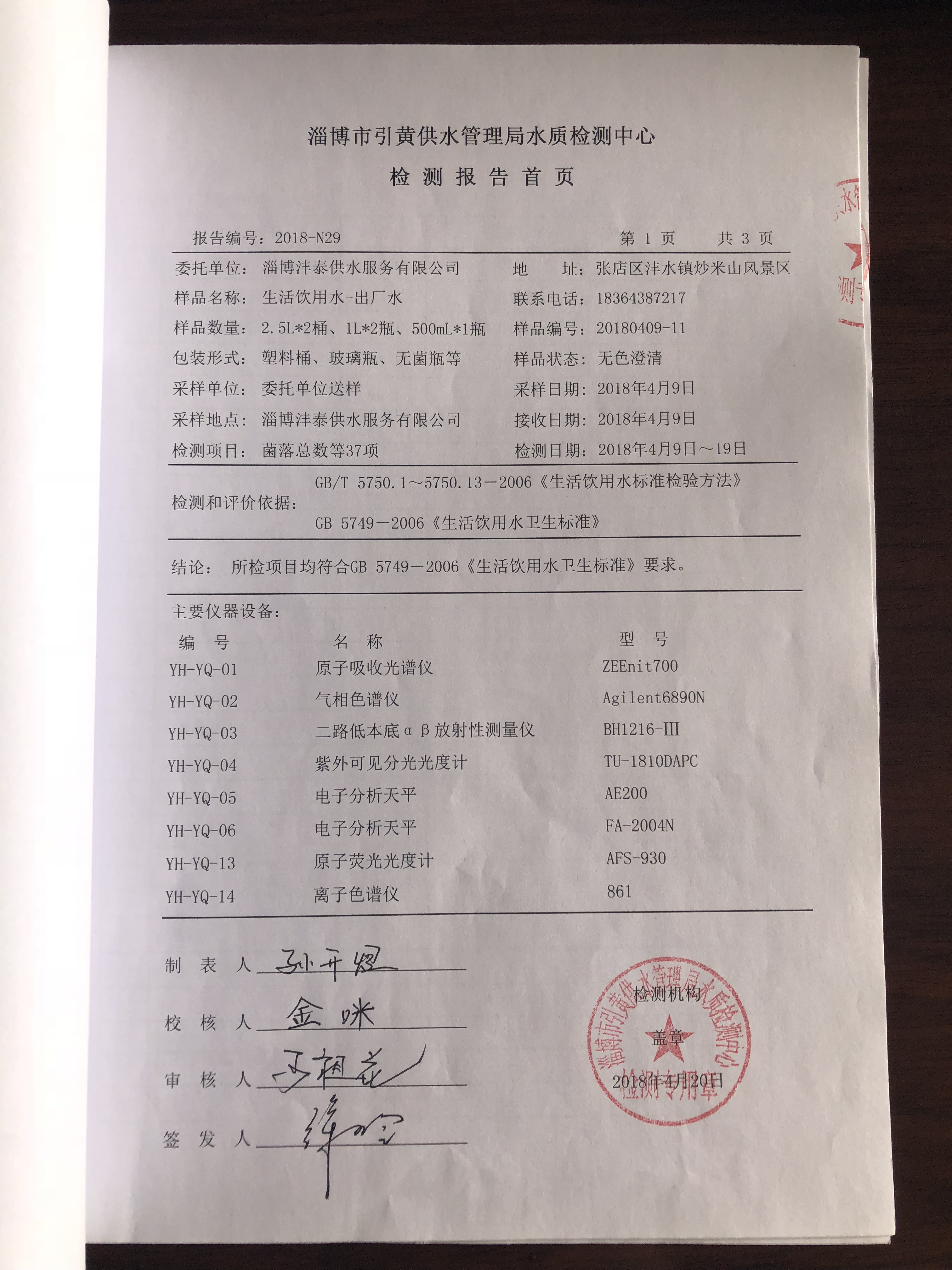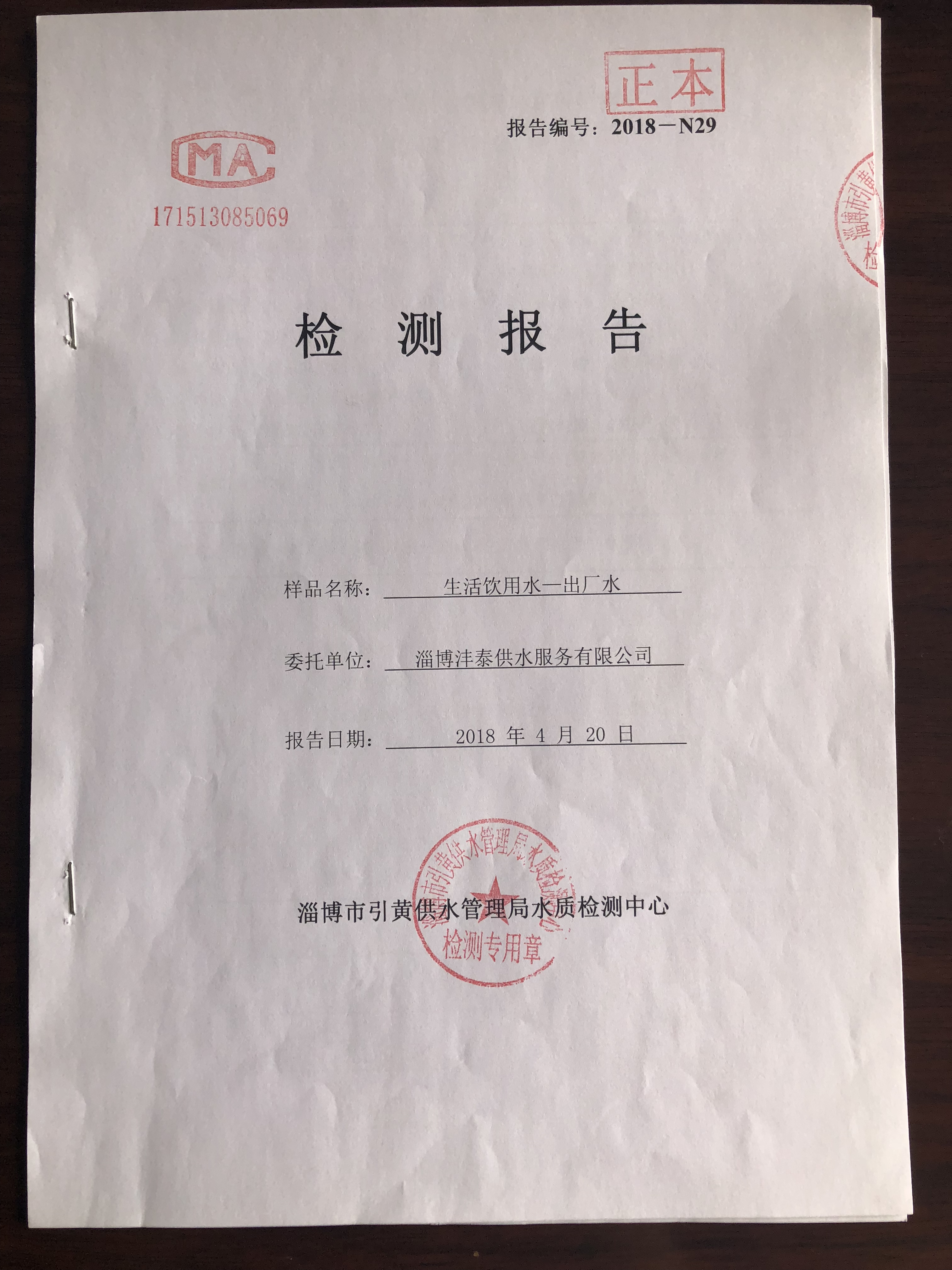 淄博沣泰供水服务有限公司出厂水检测月报表