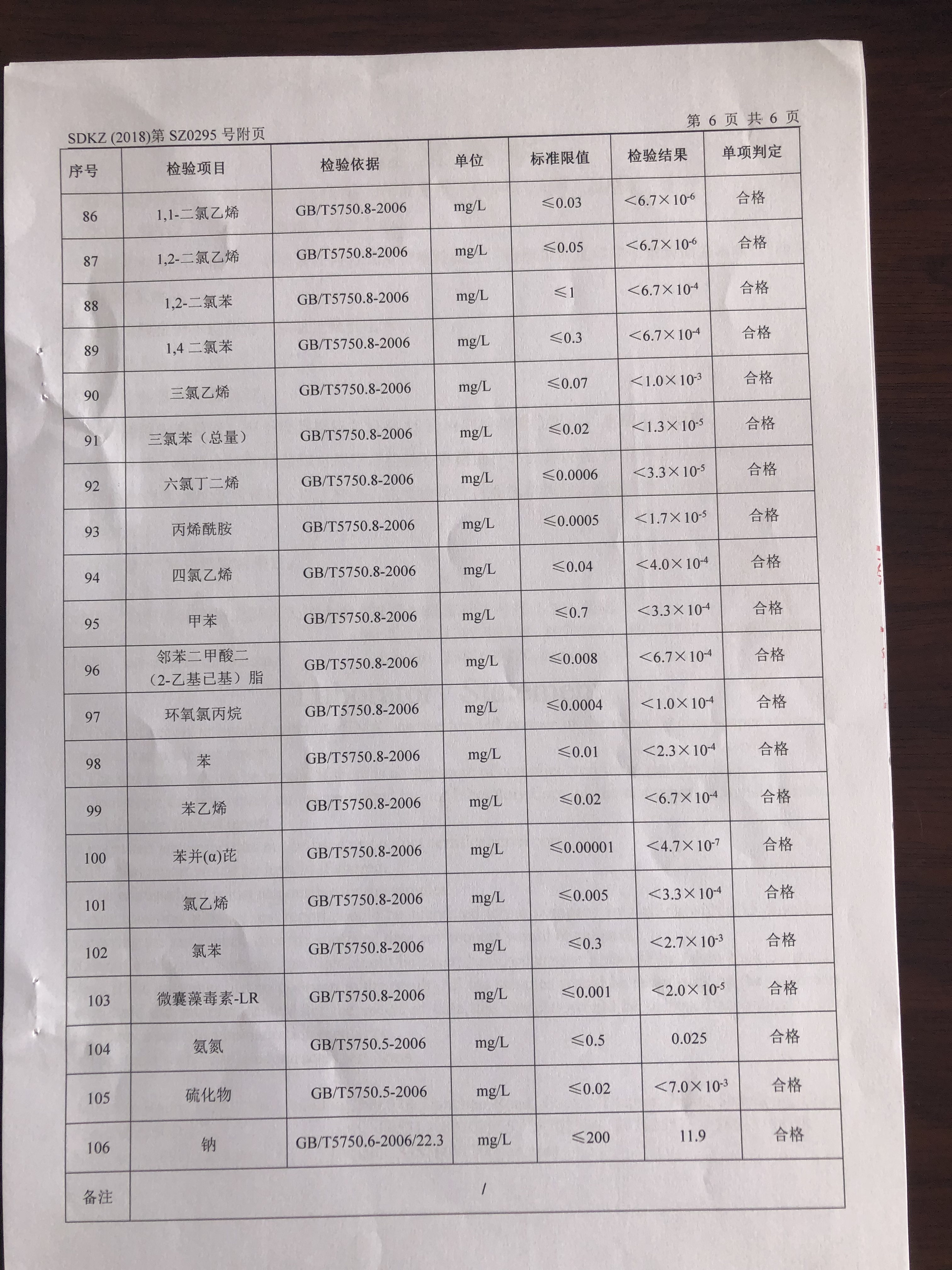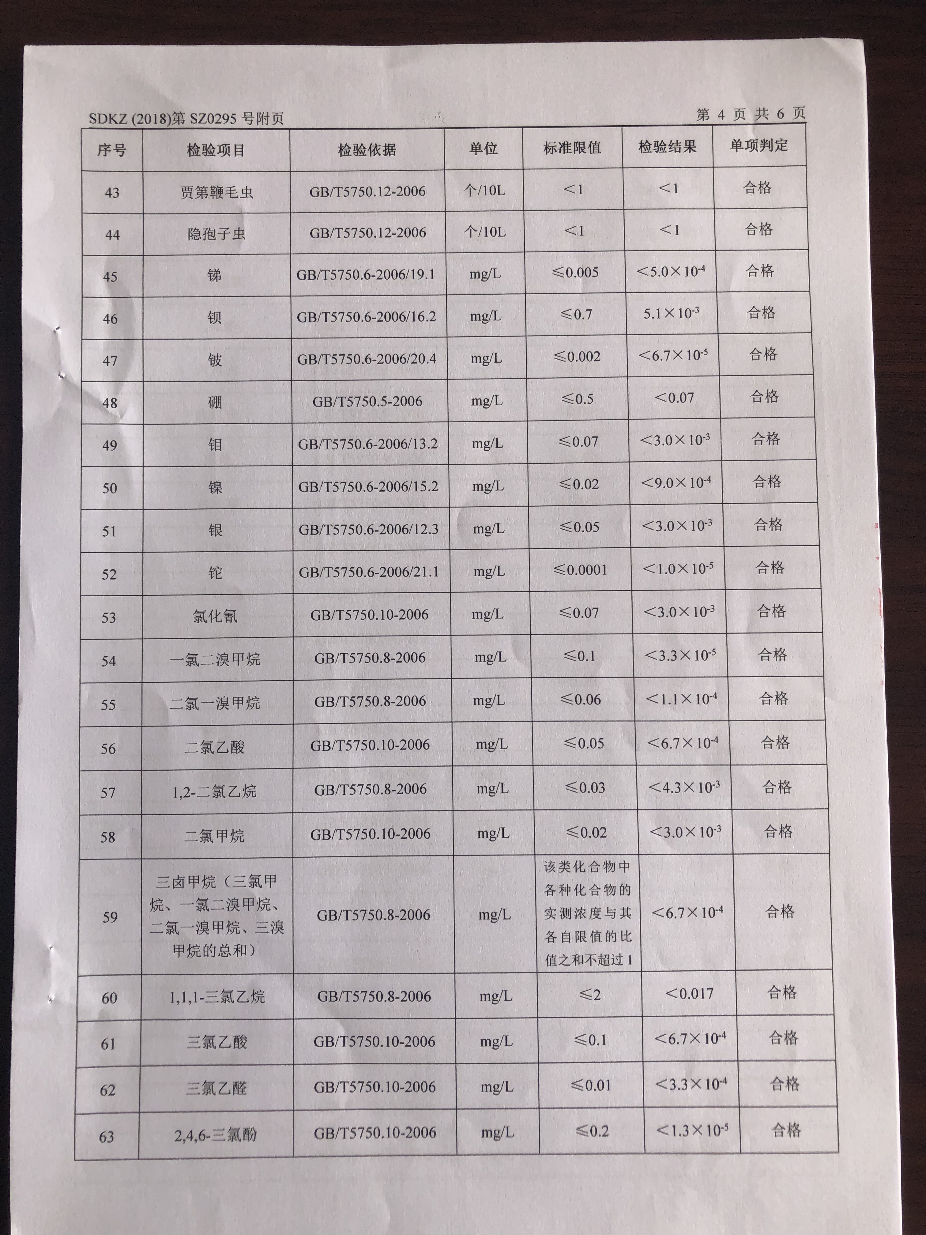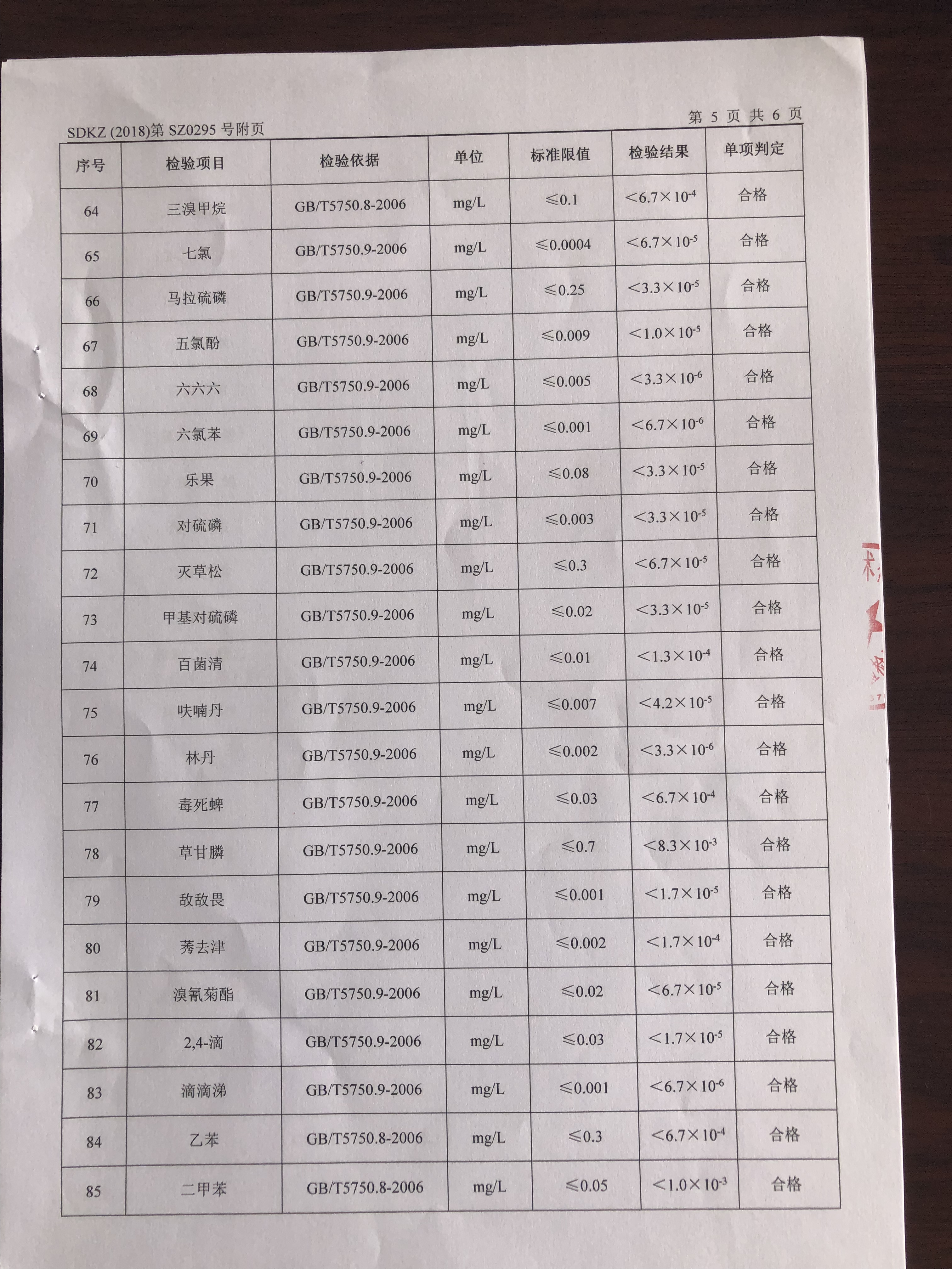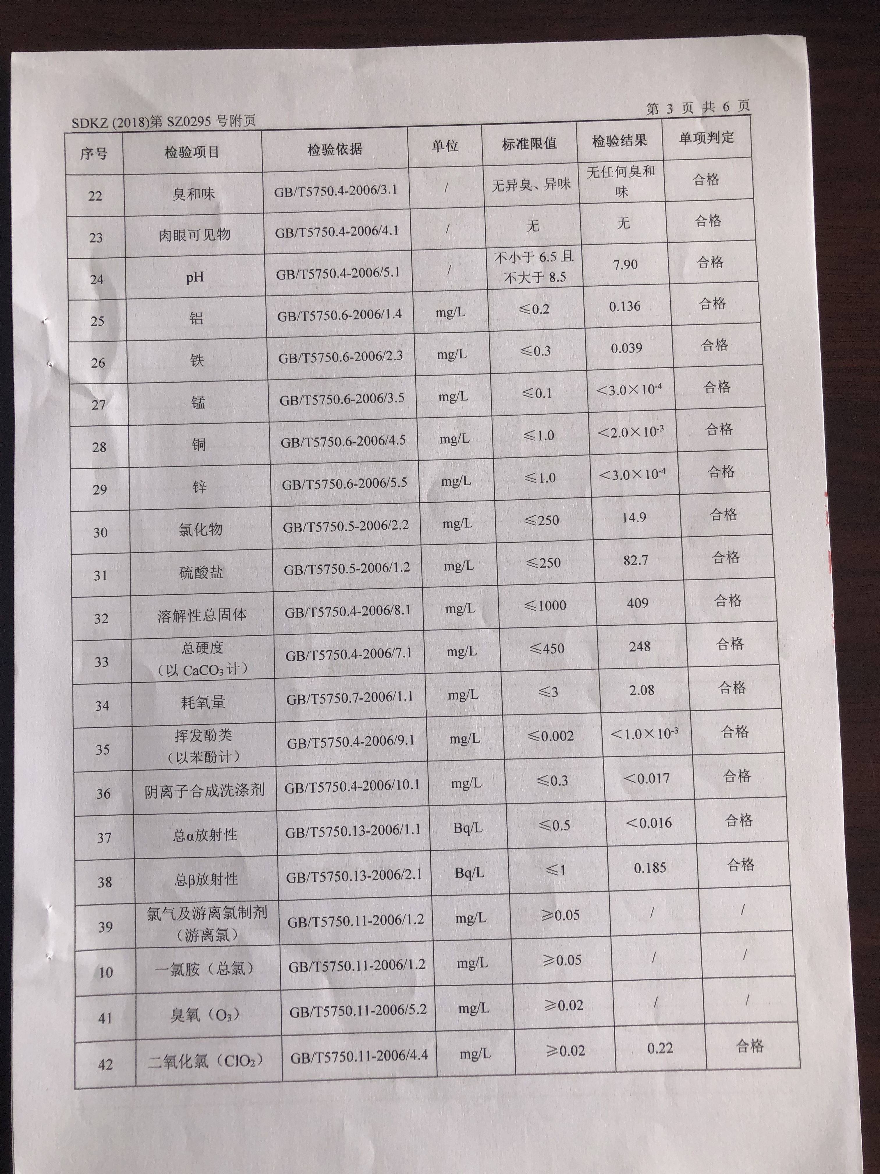 淄博沣泰供水服务有限公司出厂水检测月报表
