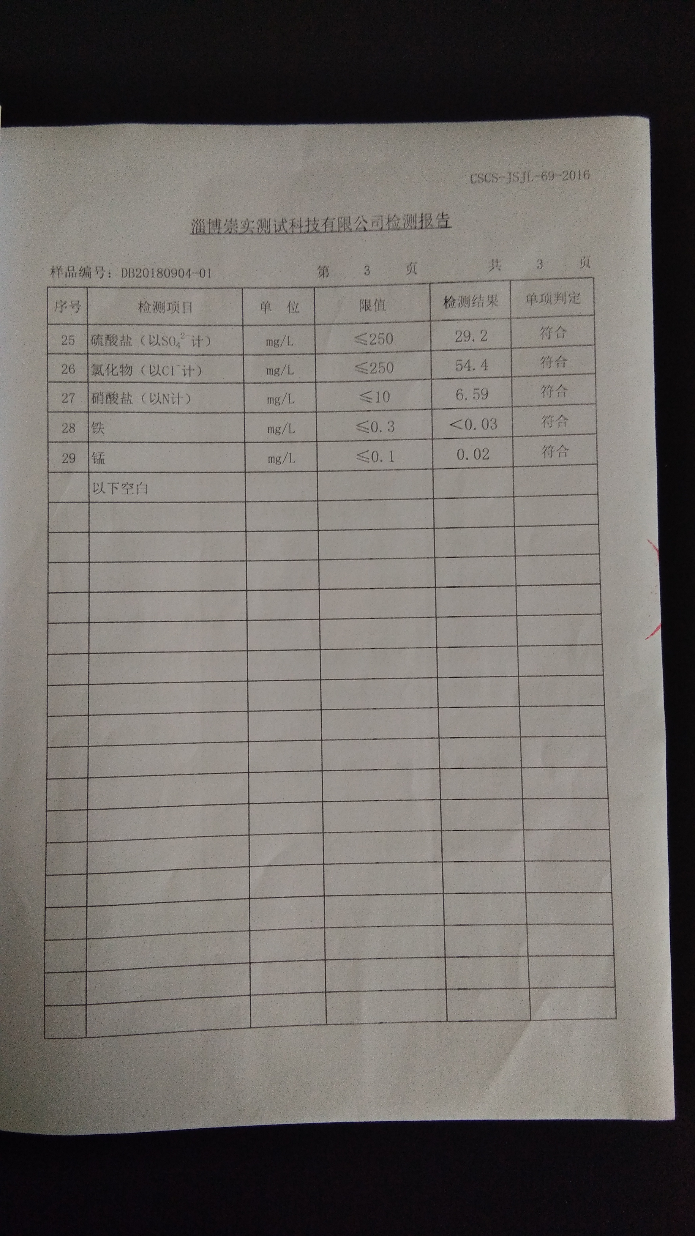 淄博沣泰供水服务有限公司地表水检测月报表