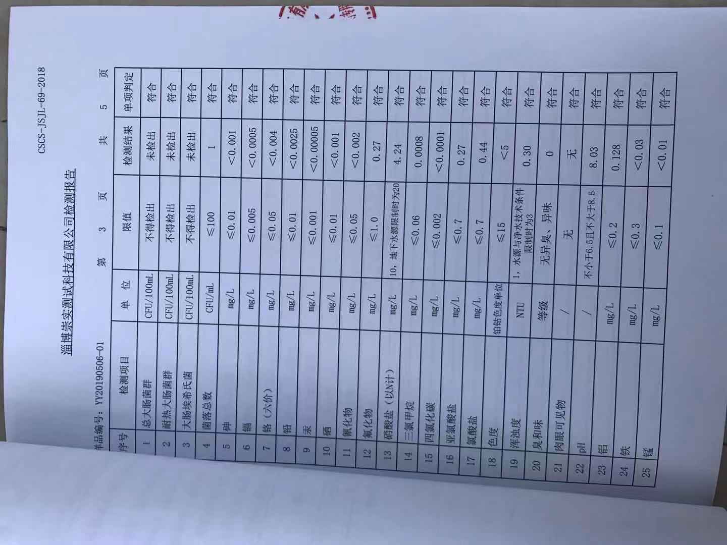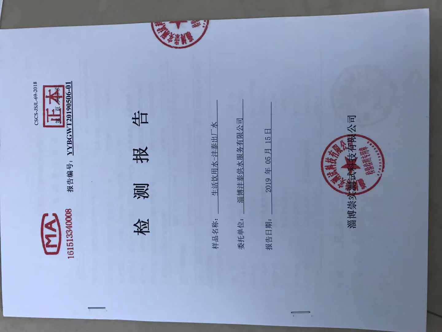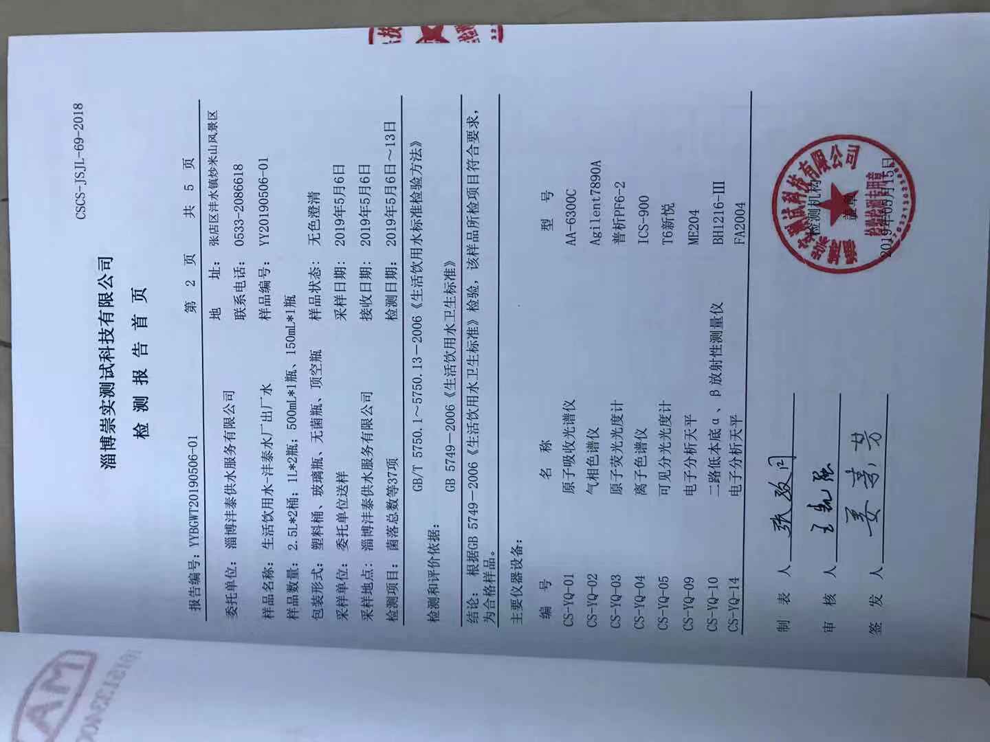 淄博沣泰供水服务有限公司出厂水月报表