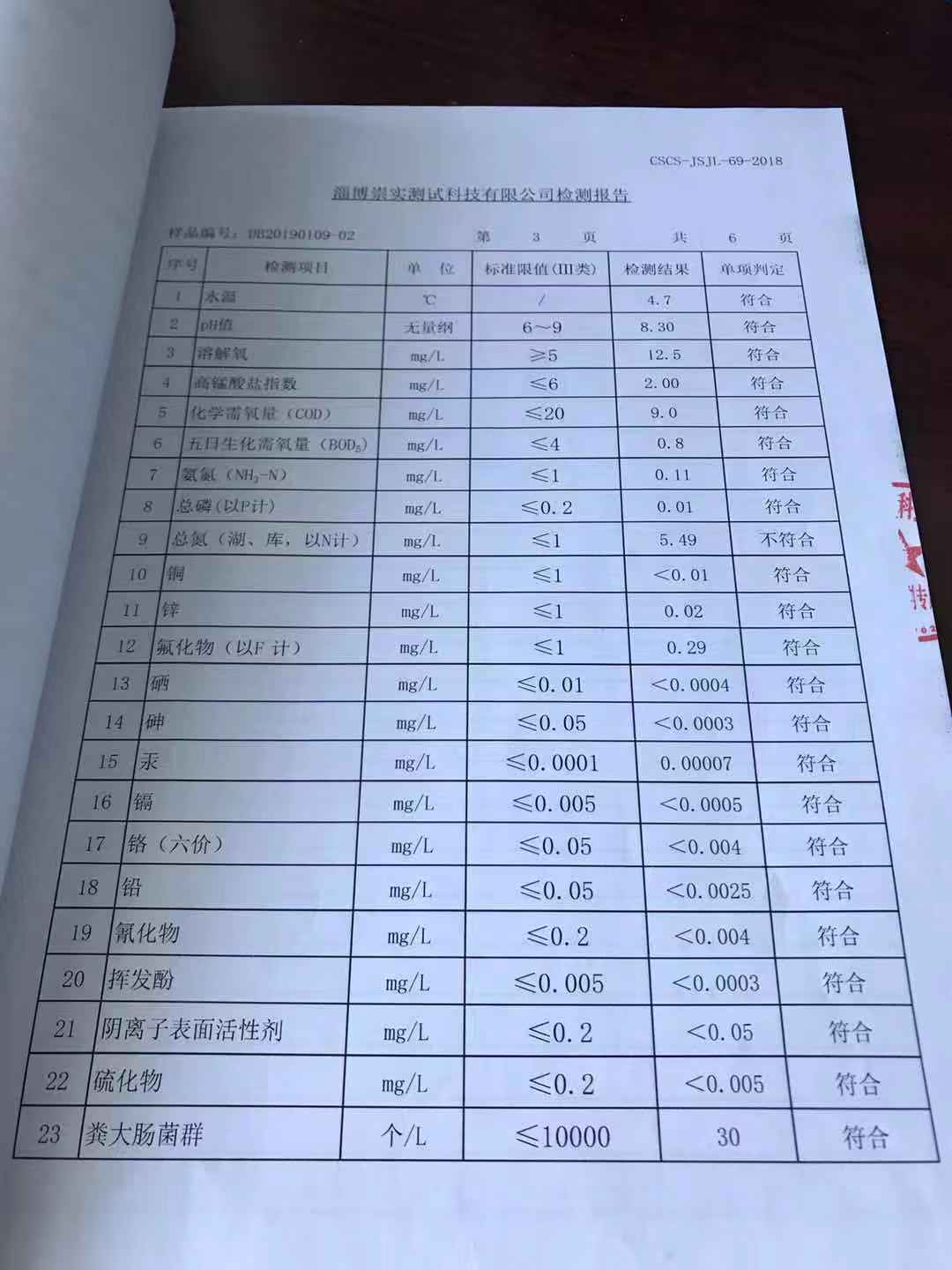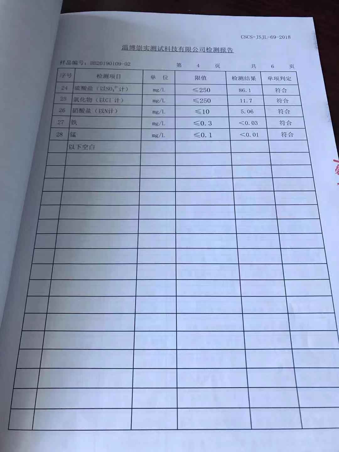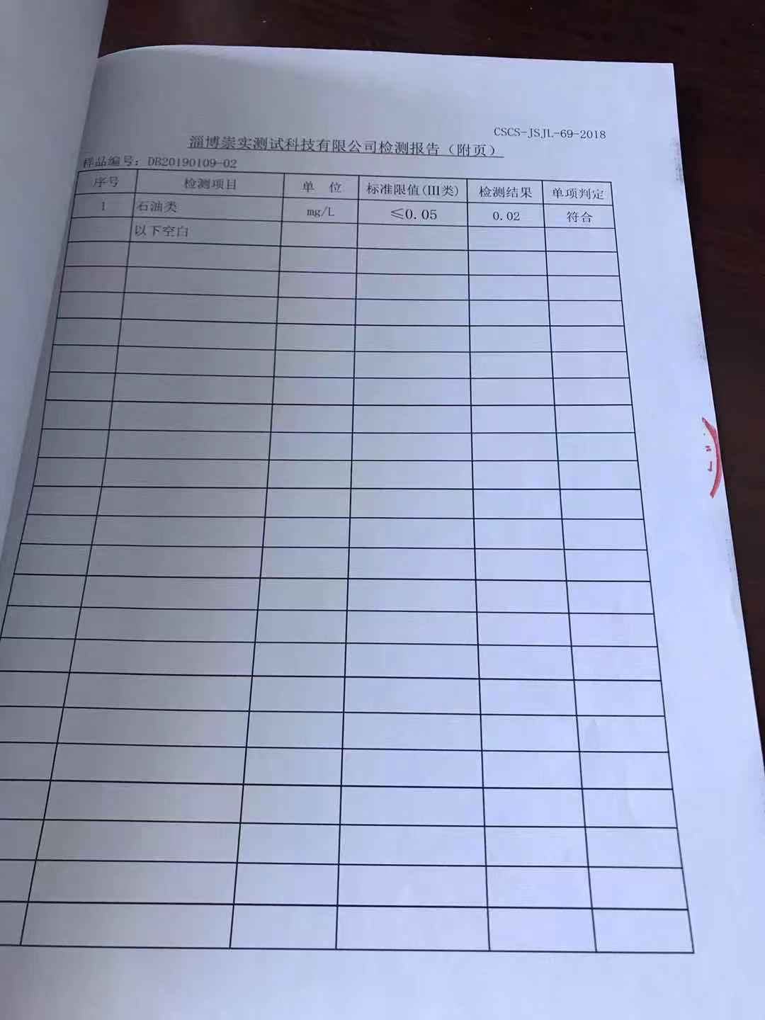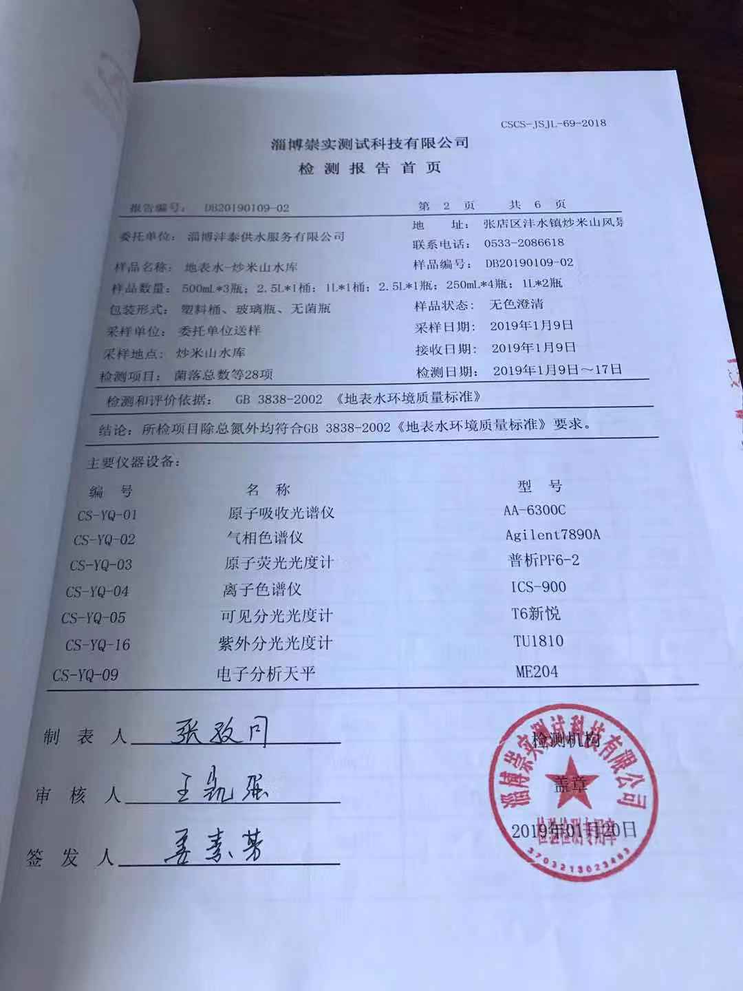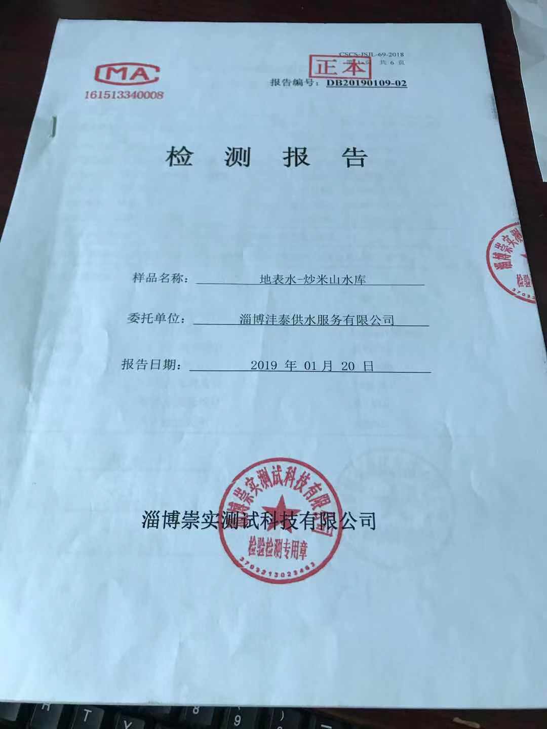 淄博沣泰供水服务有限公司地表水月报表