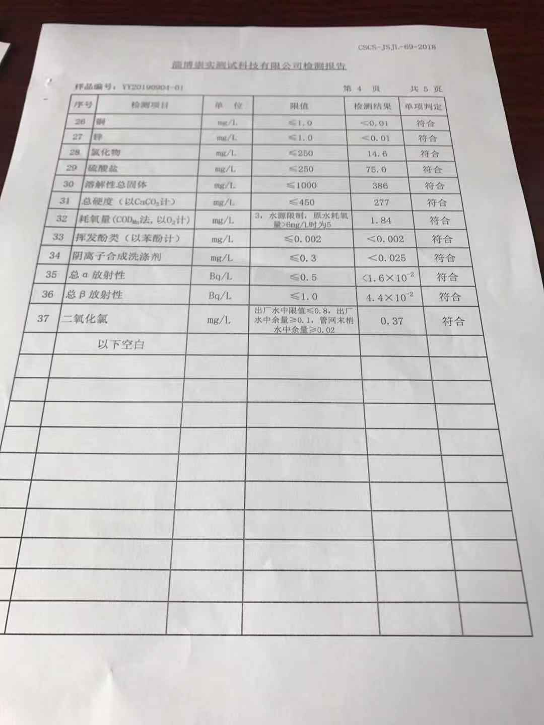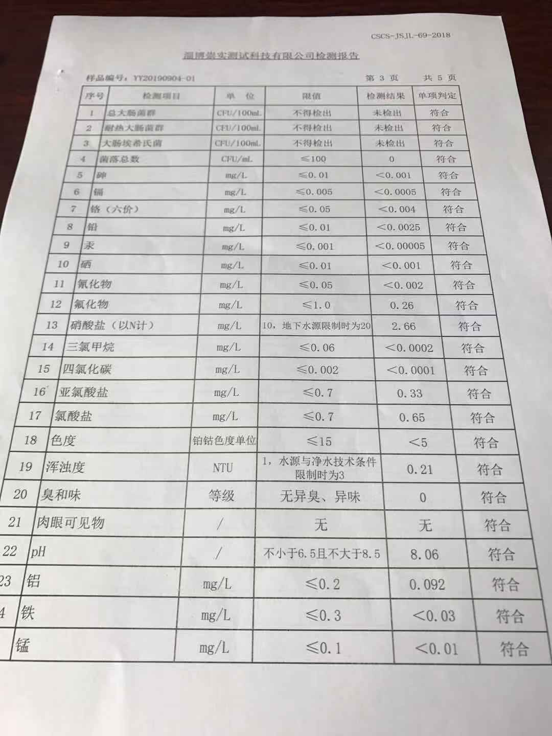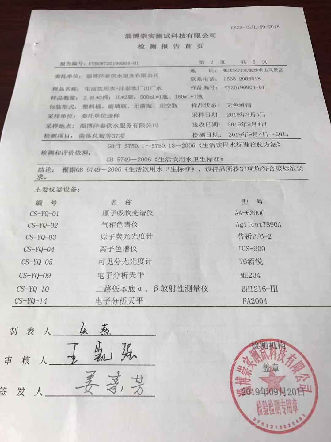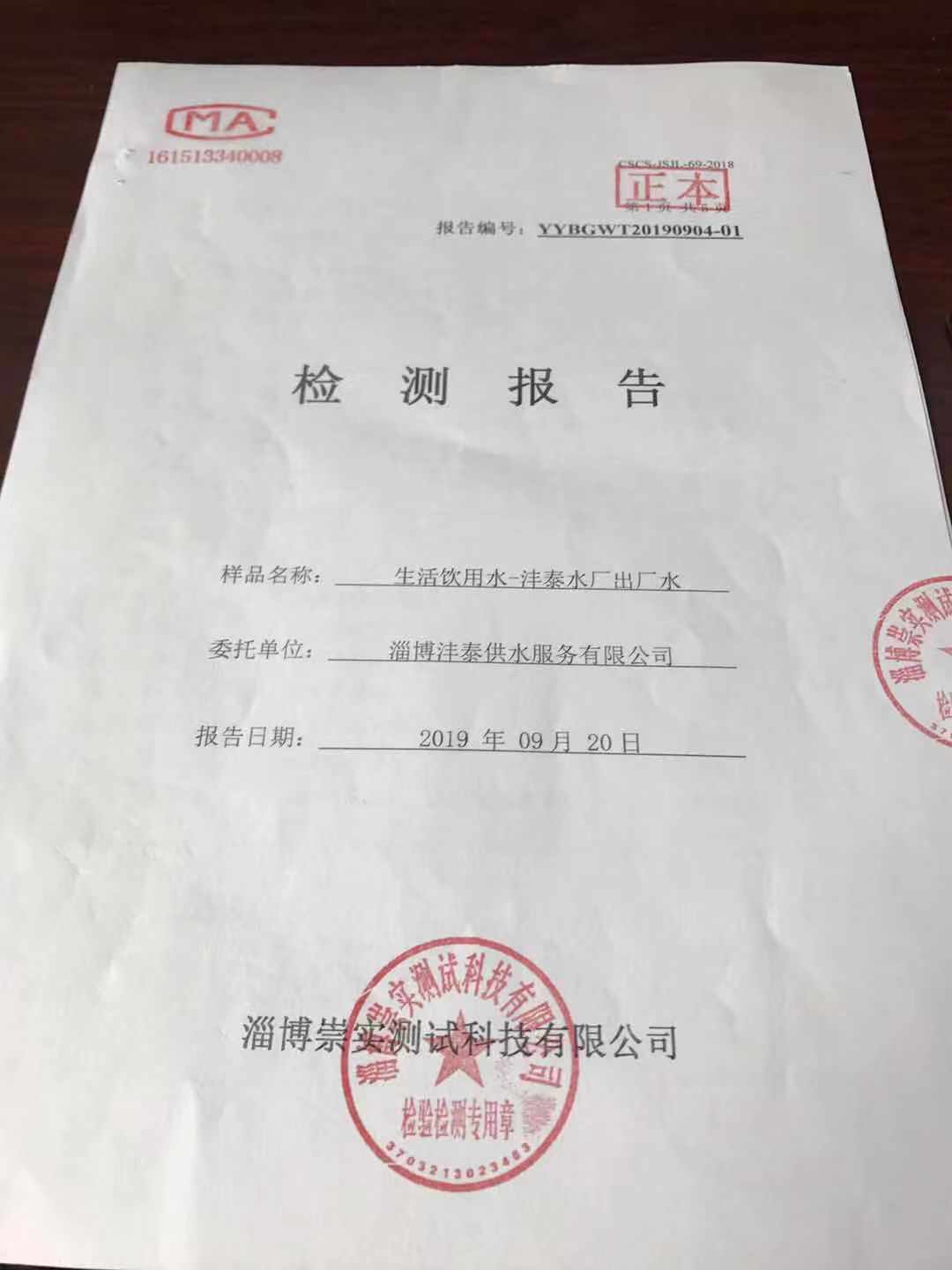淄博沣泰供水服务有限公司出厂水月报表