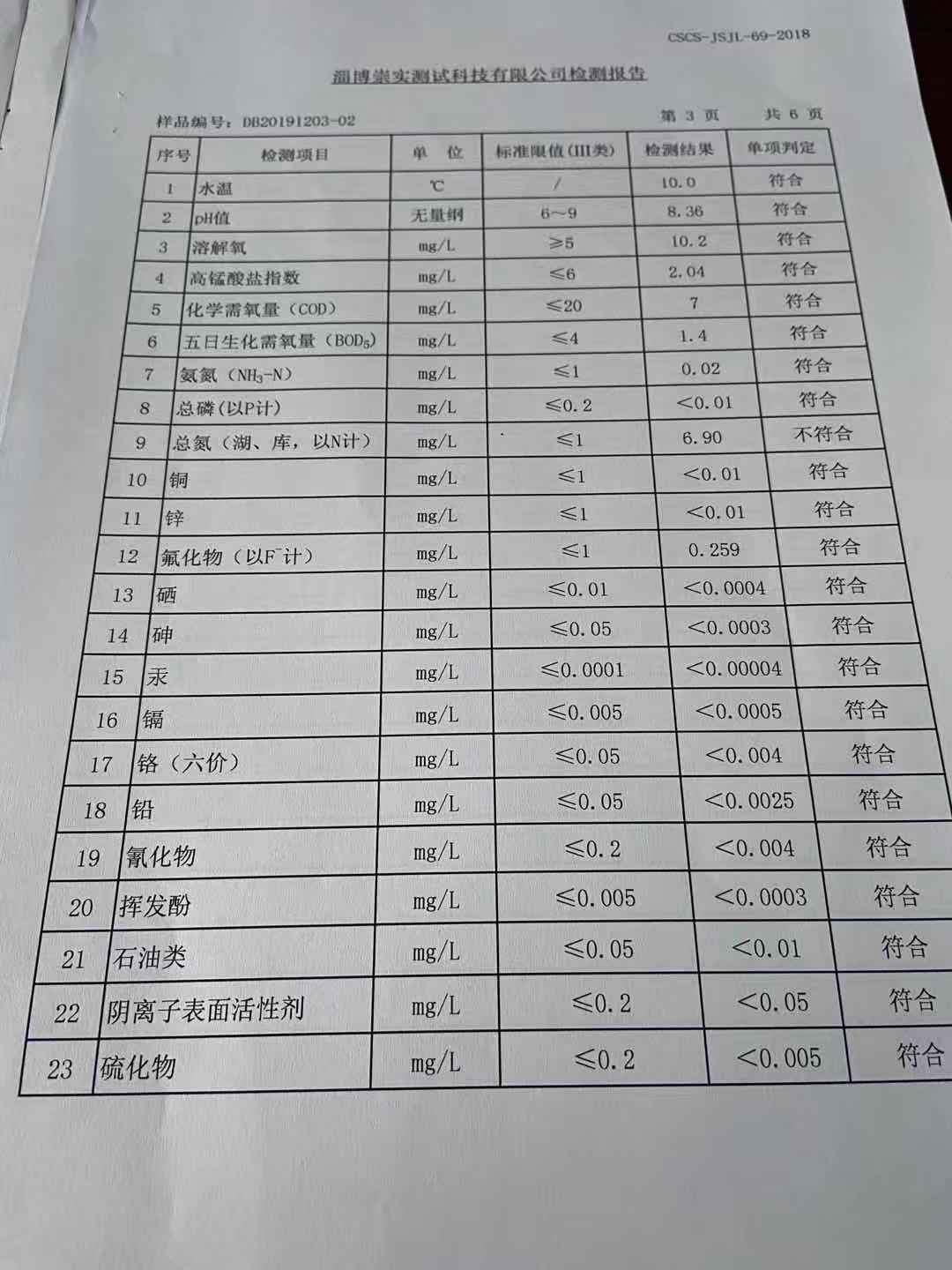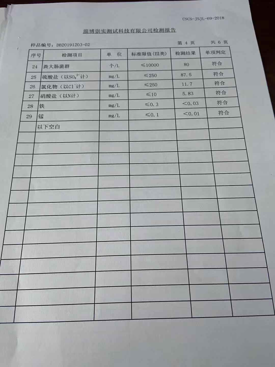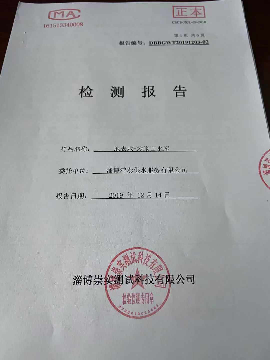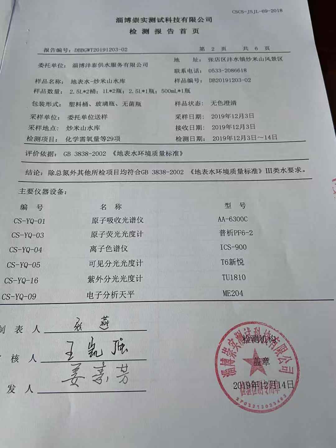 淄博沣泰供水服务有限公司地表水月报表