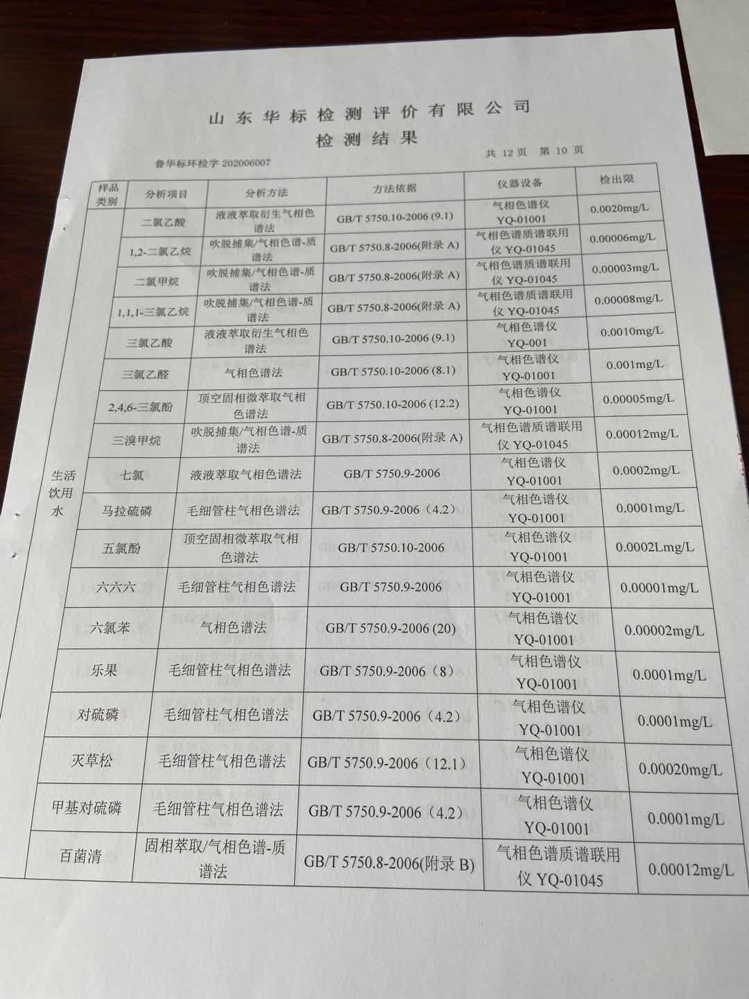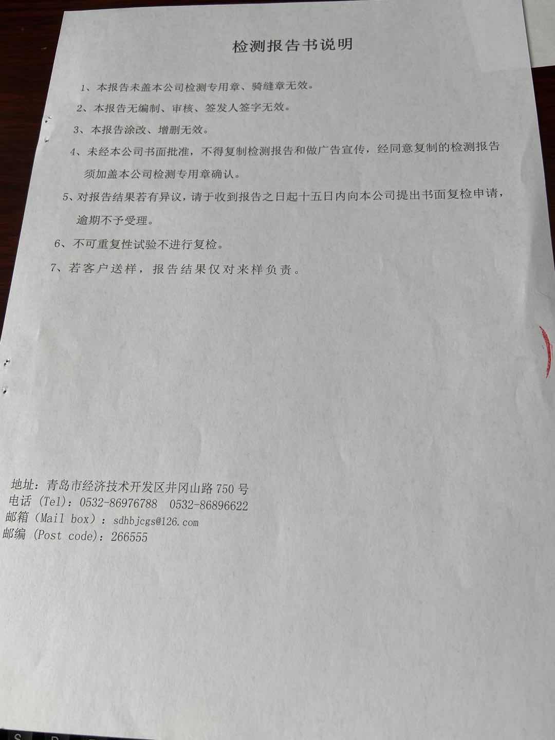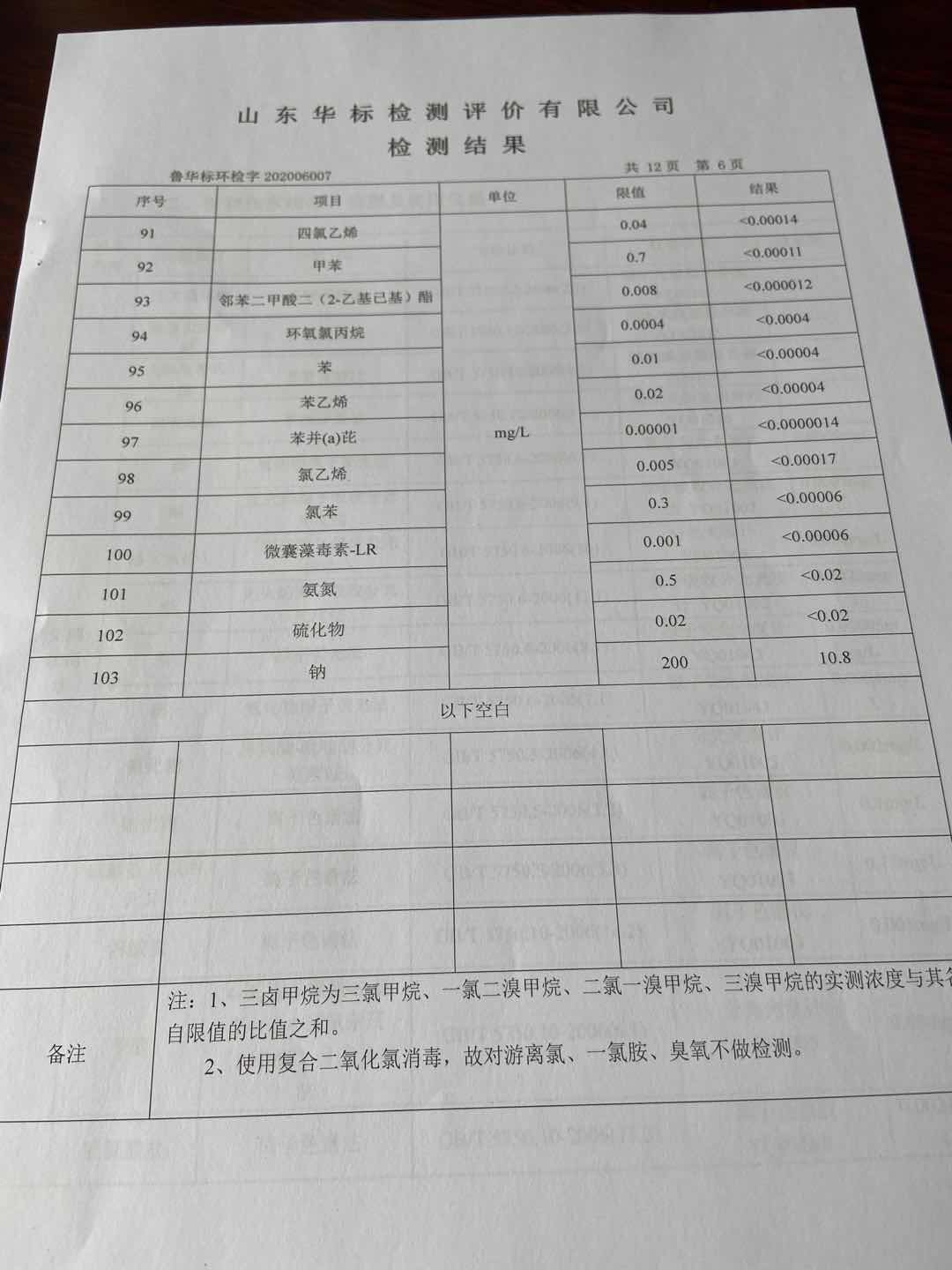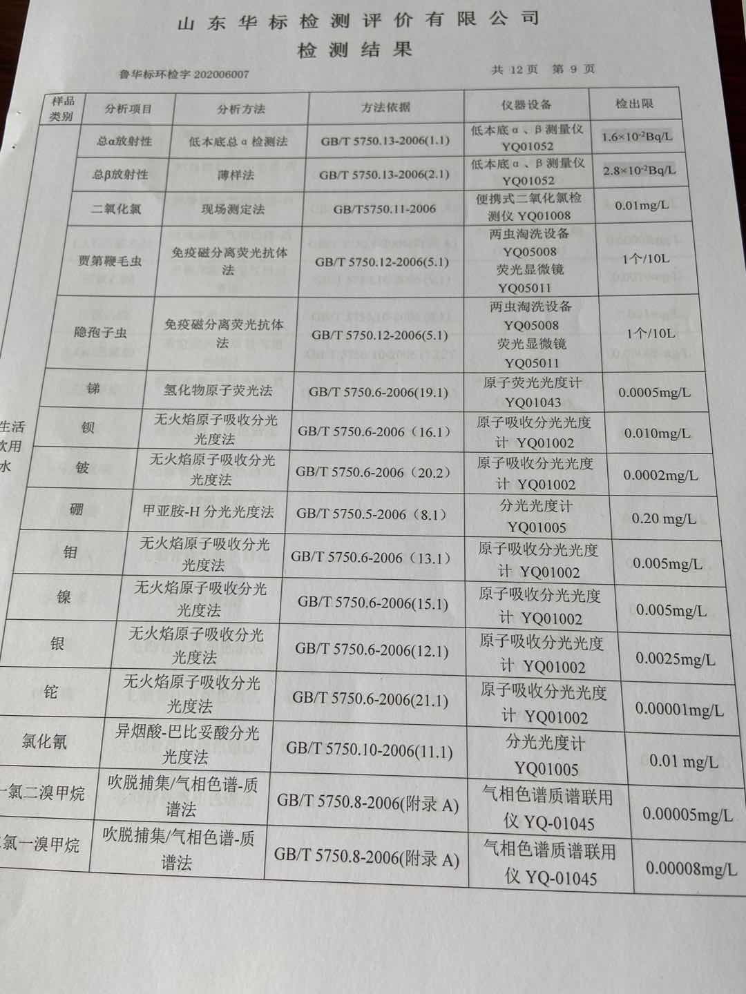 淄博沣泰供水服务有限公司出厂水月检报告