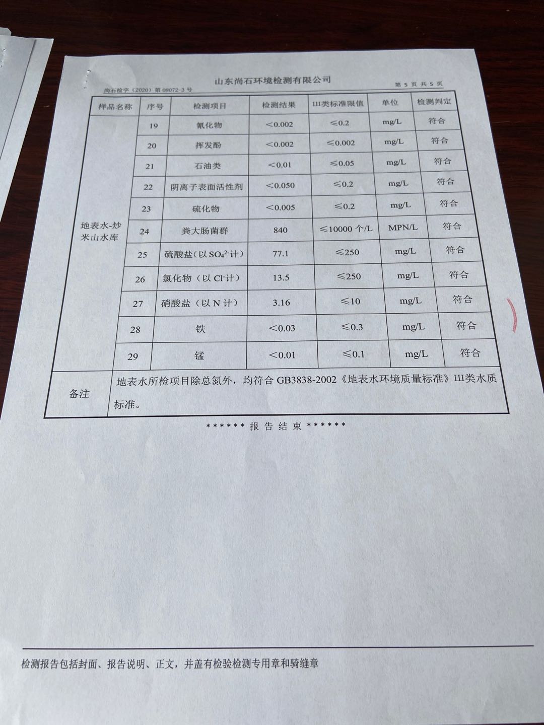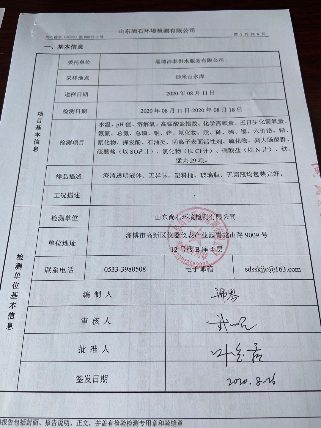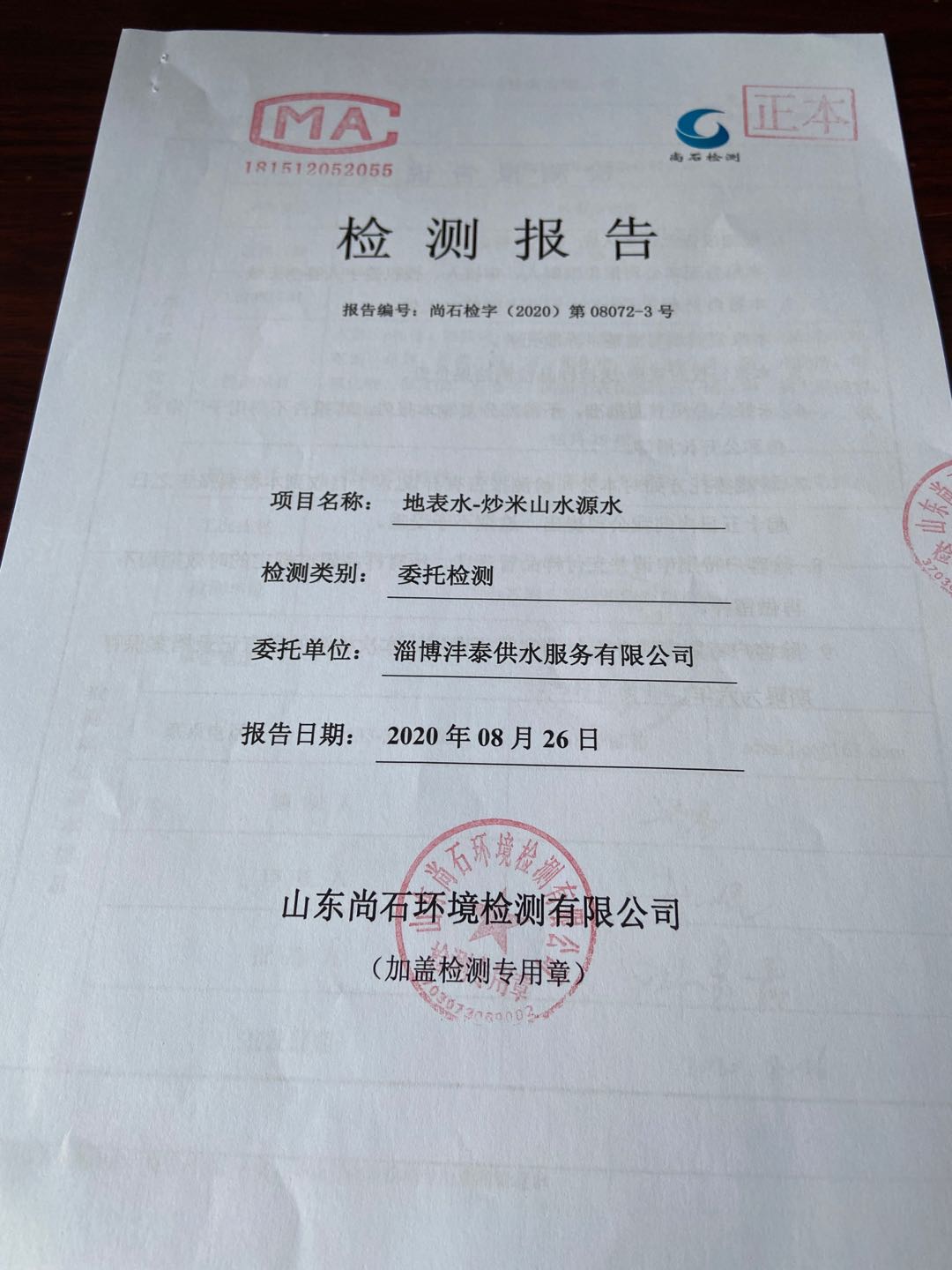 淄博沣泰供水服务有限公司地表水月检报告