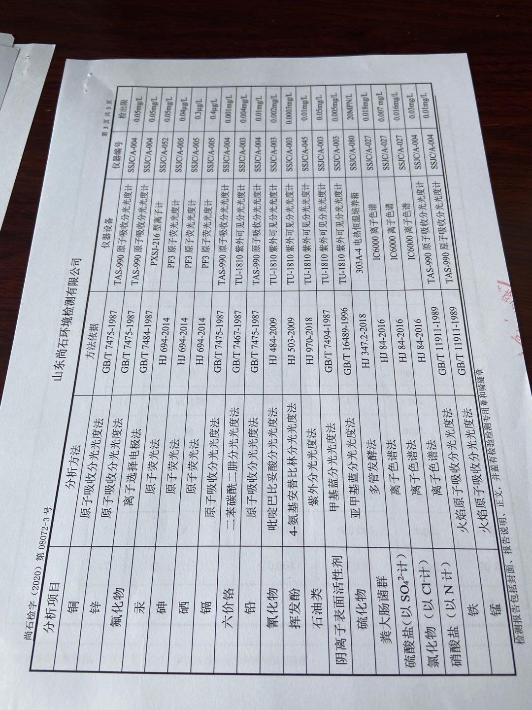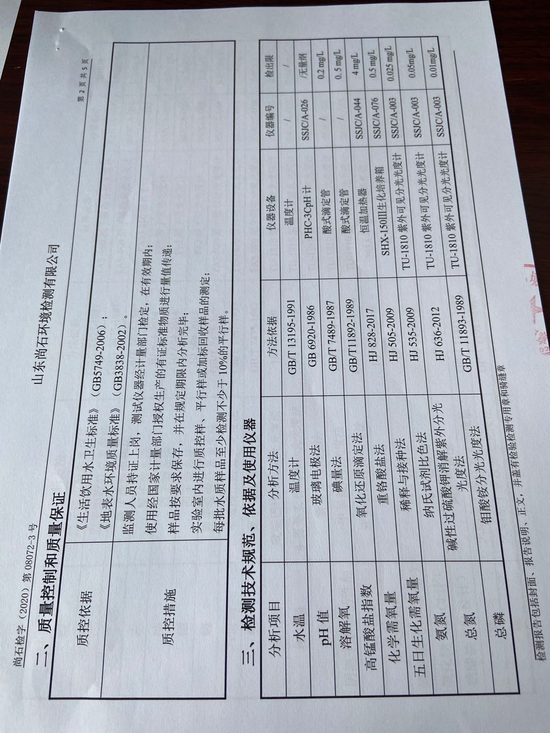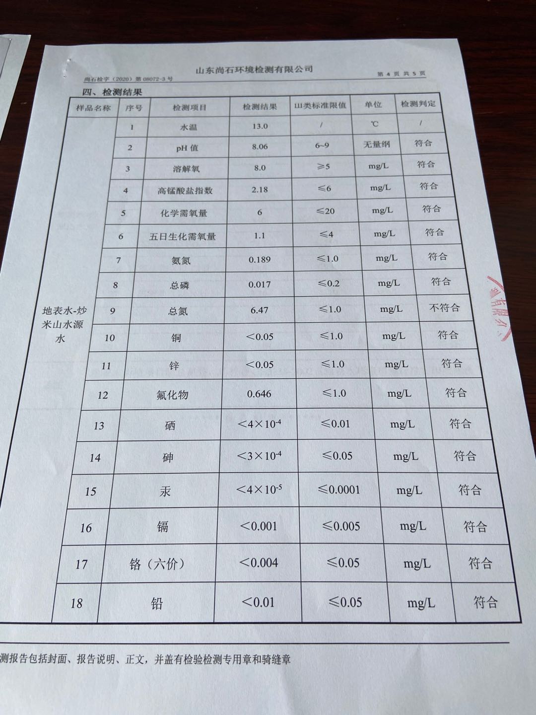 淄博沣泰供水服务有限公司地表水月检报告