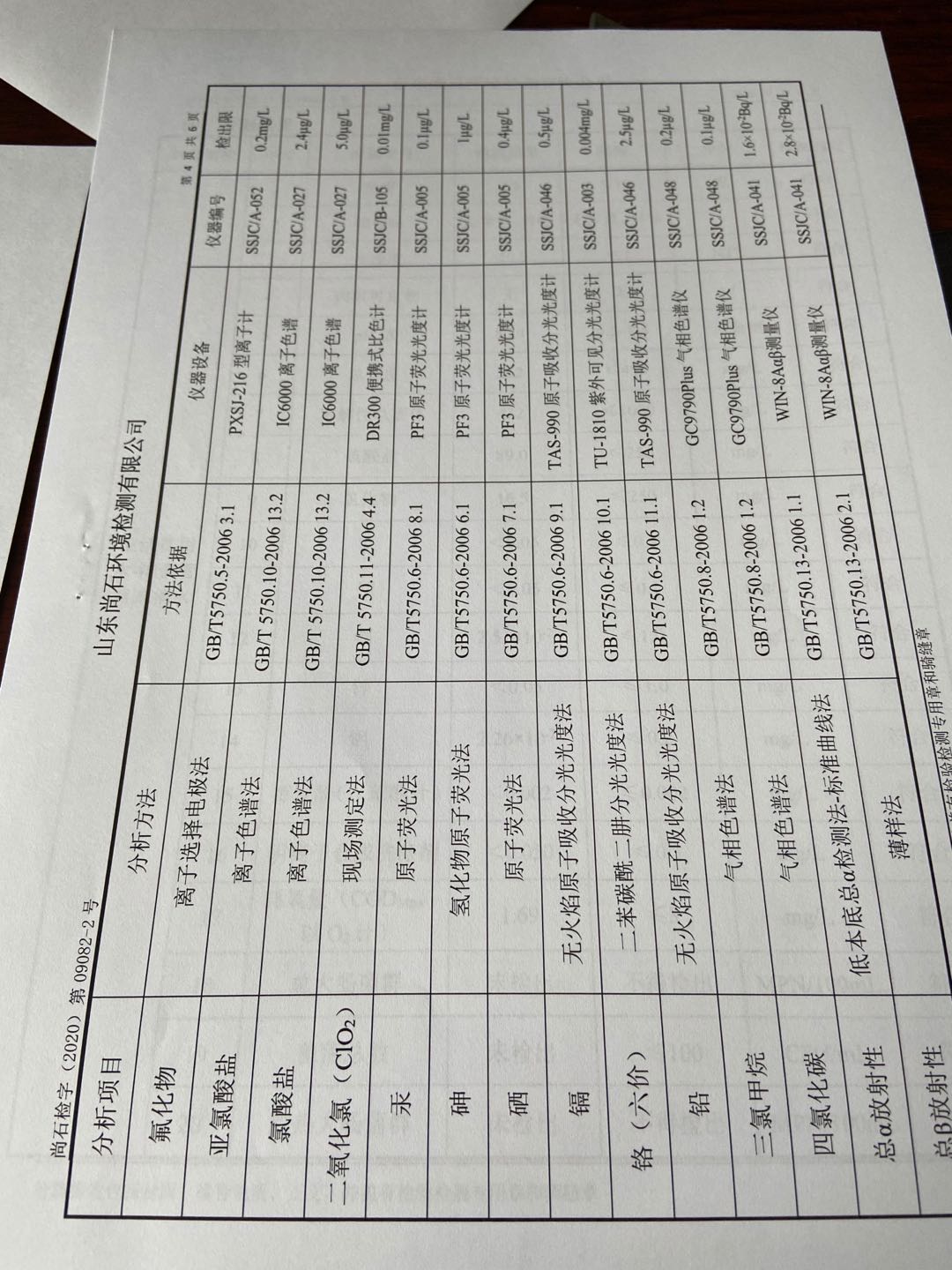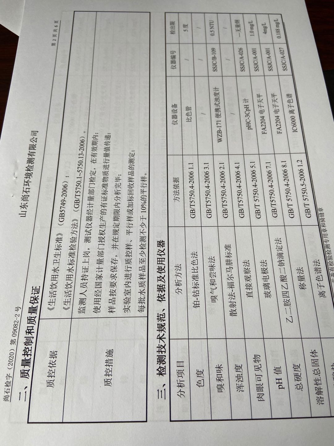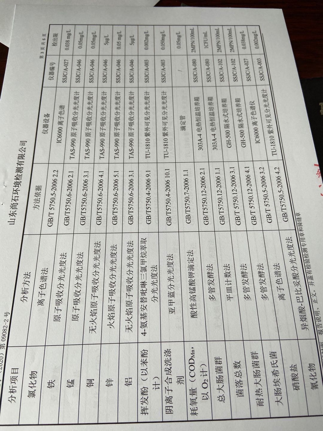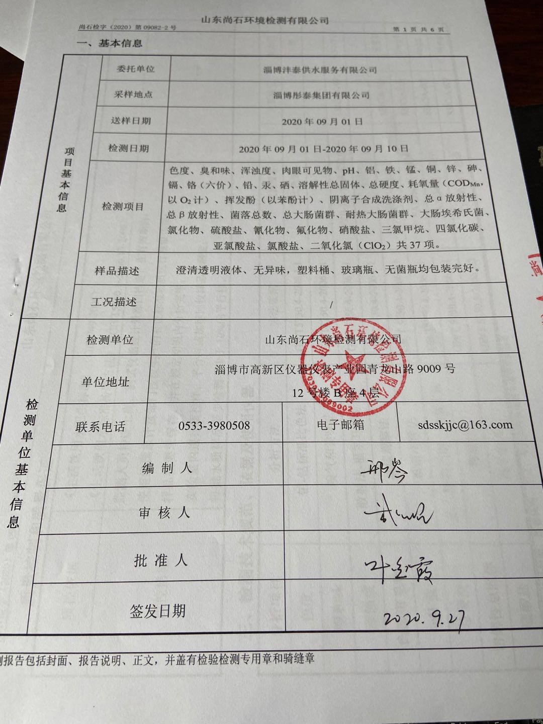 淄博沣泰供水服务有限公司末梢水月检报表