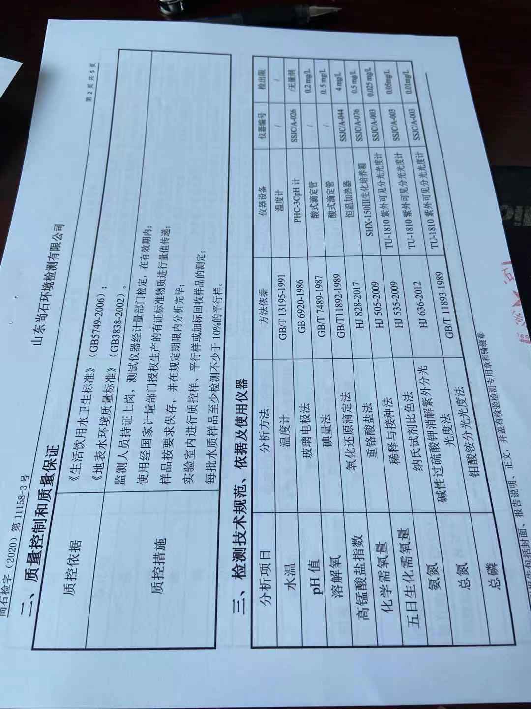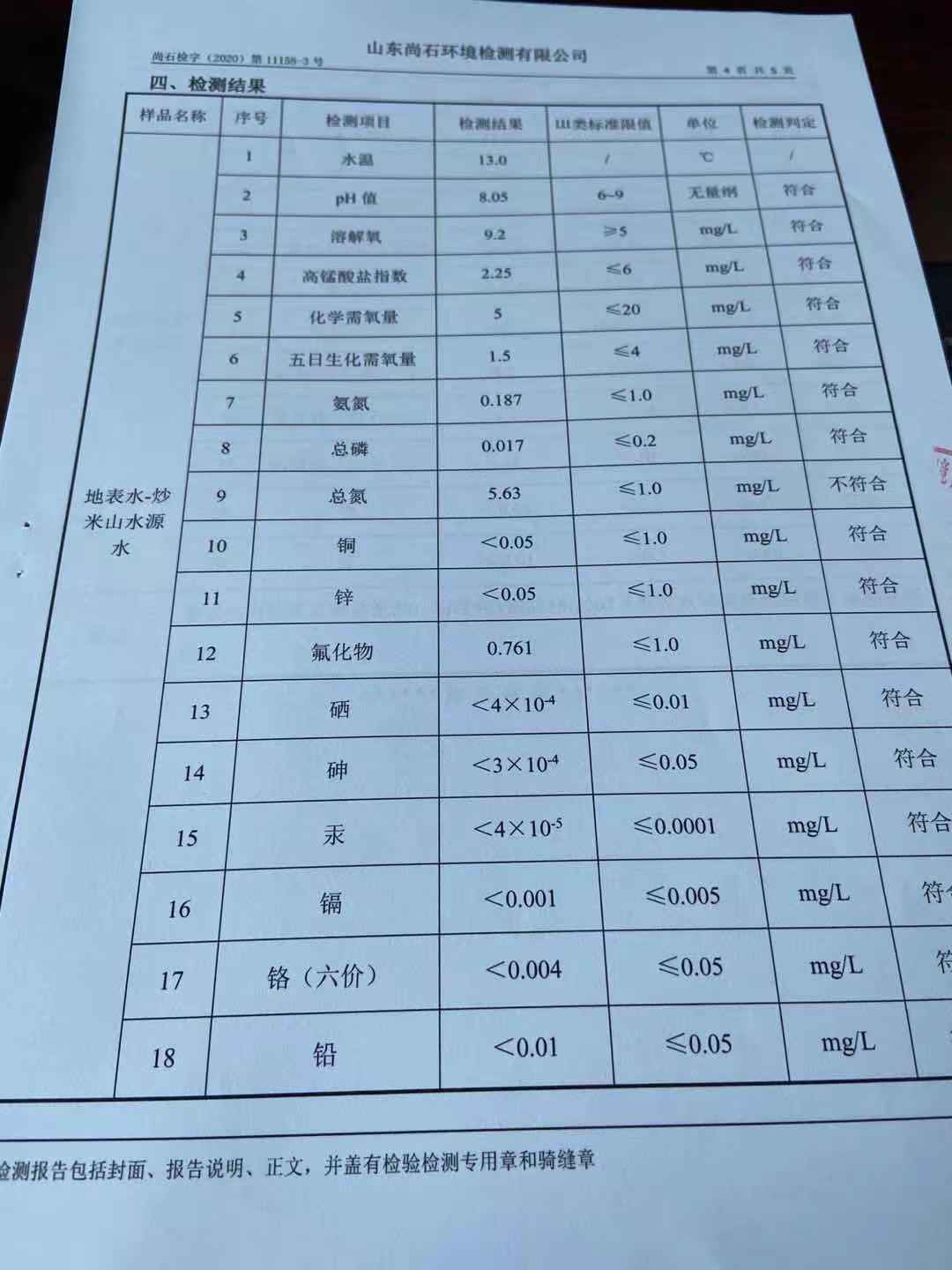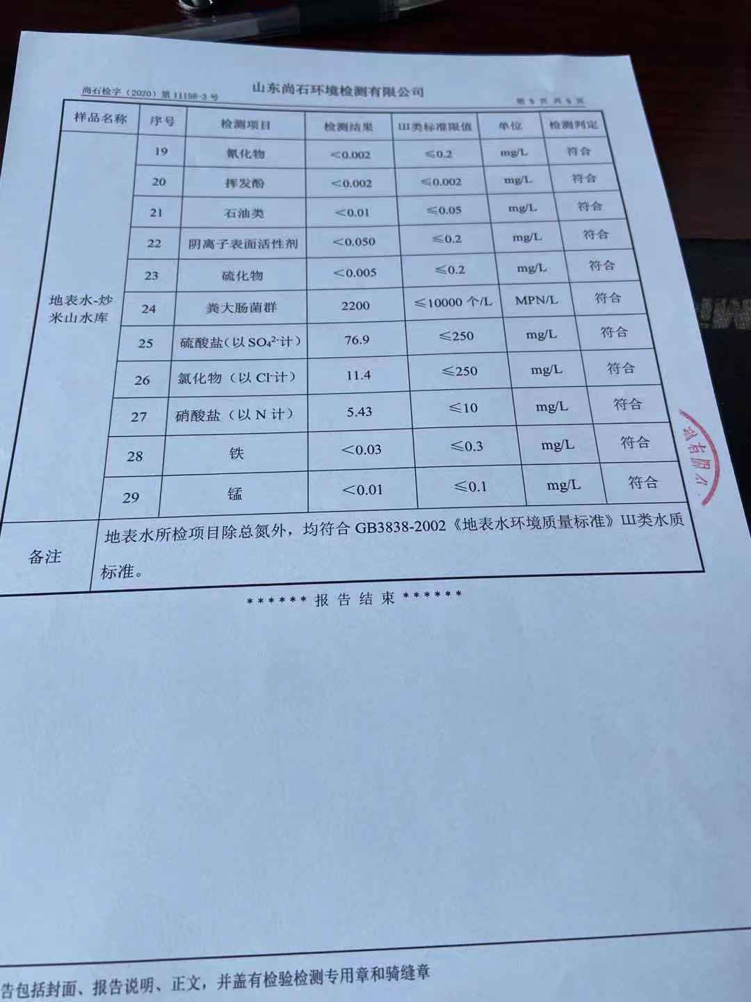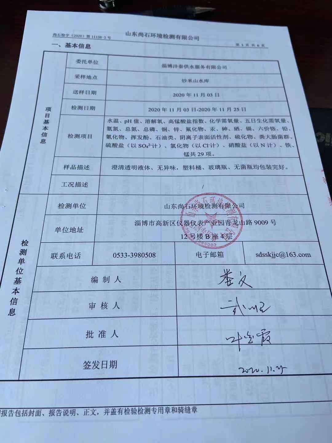 淄博沣泰供水服务有限公司地表水月检报告