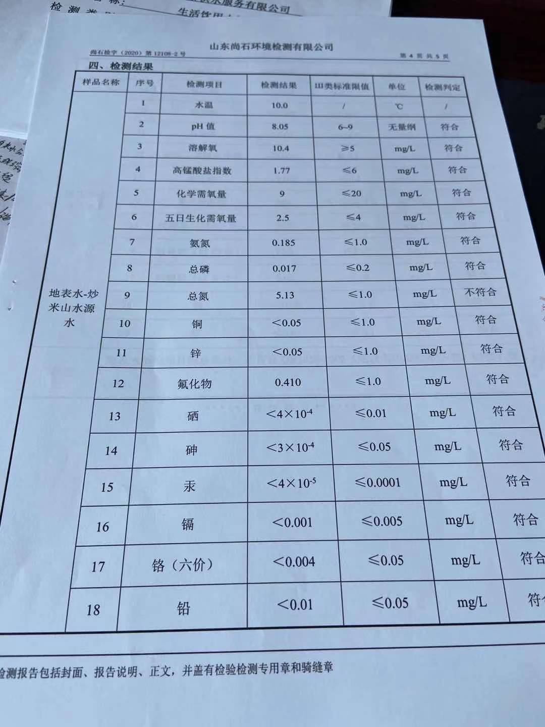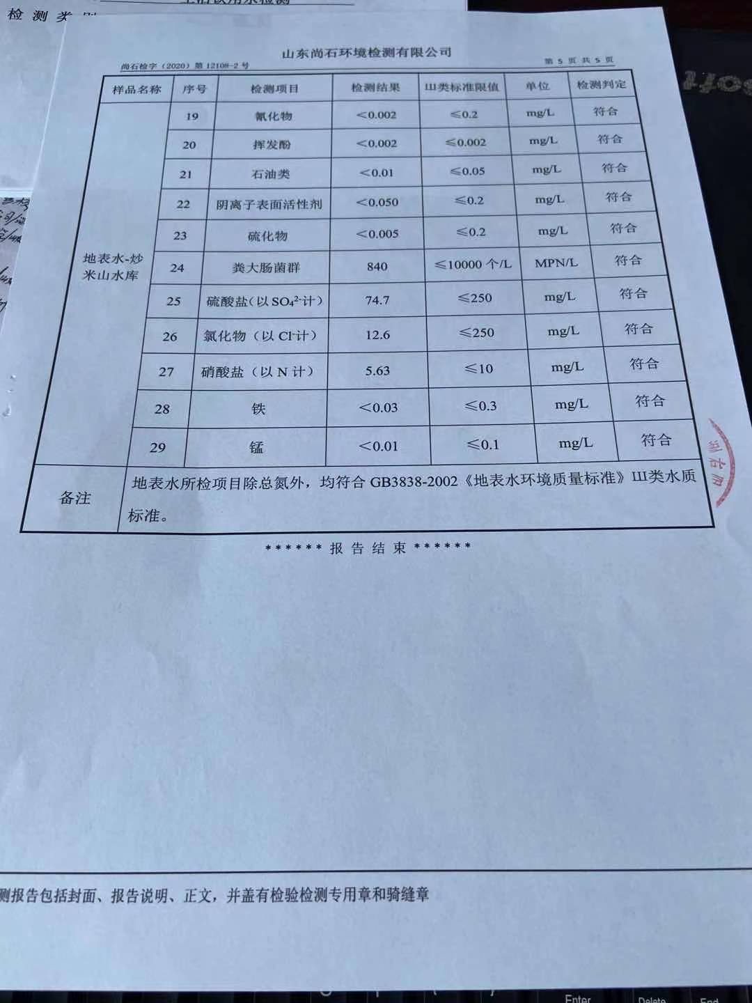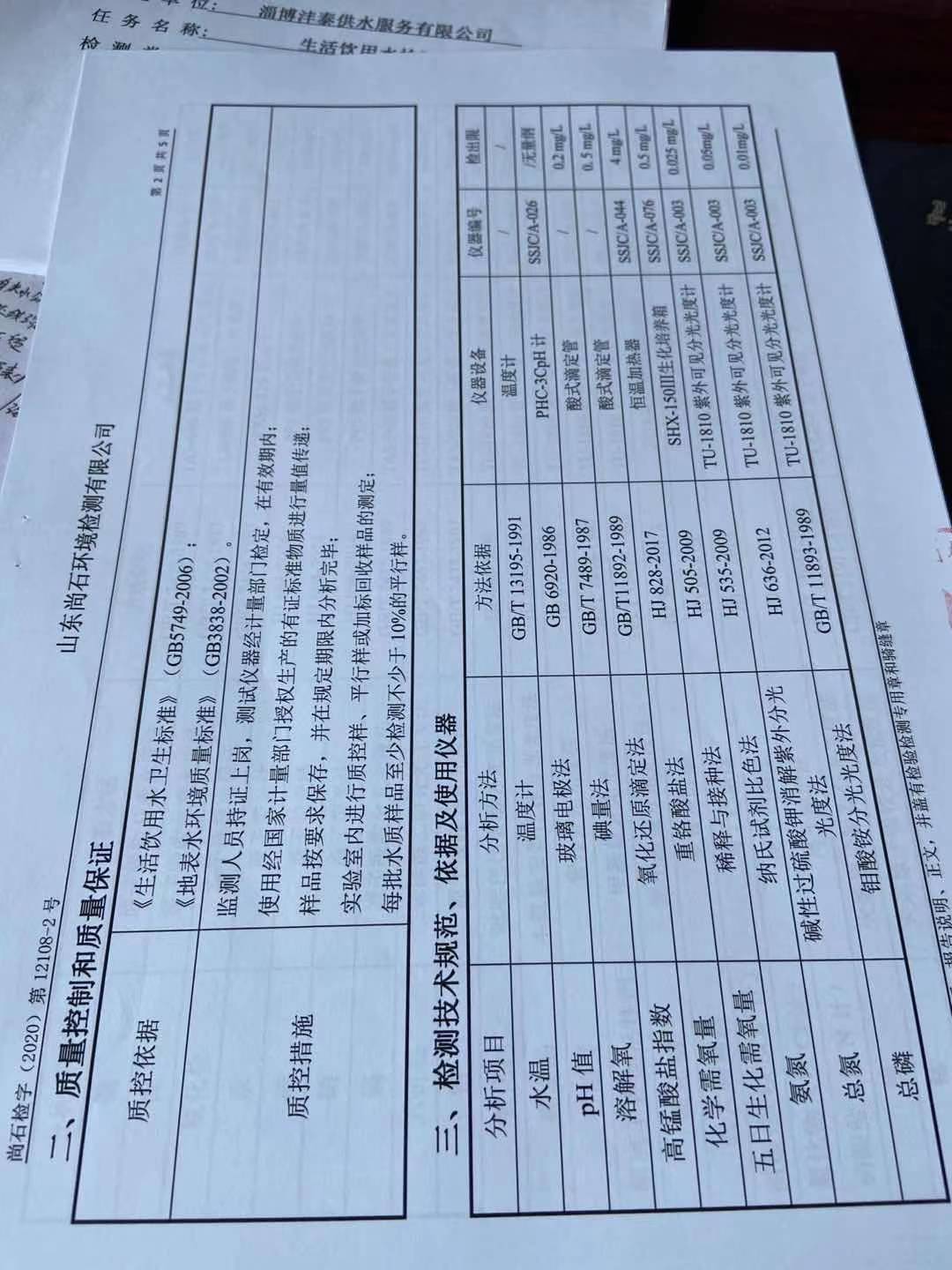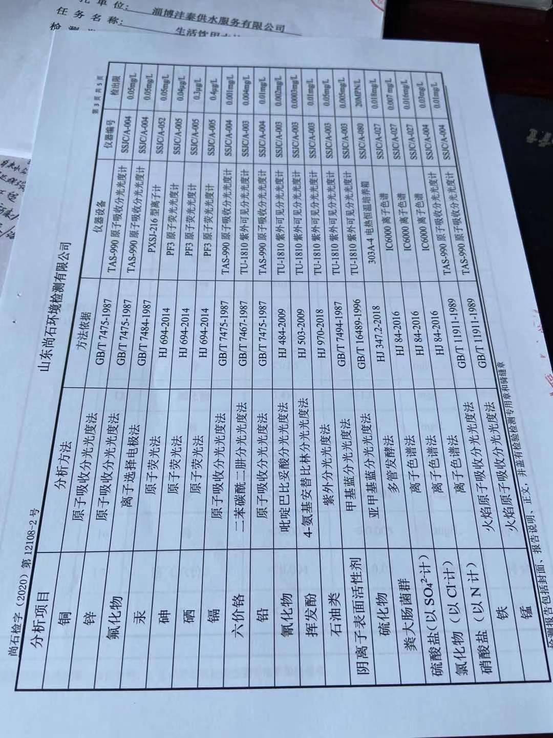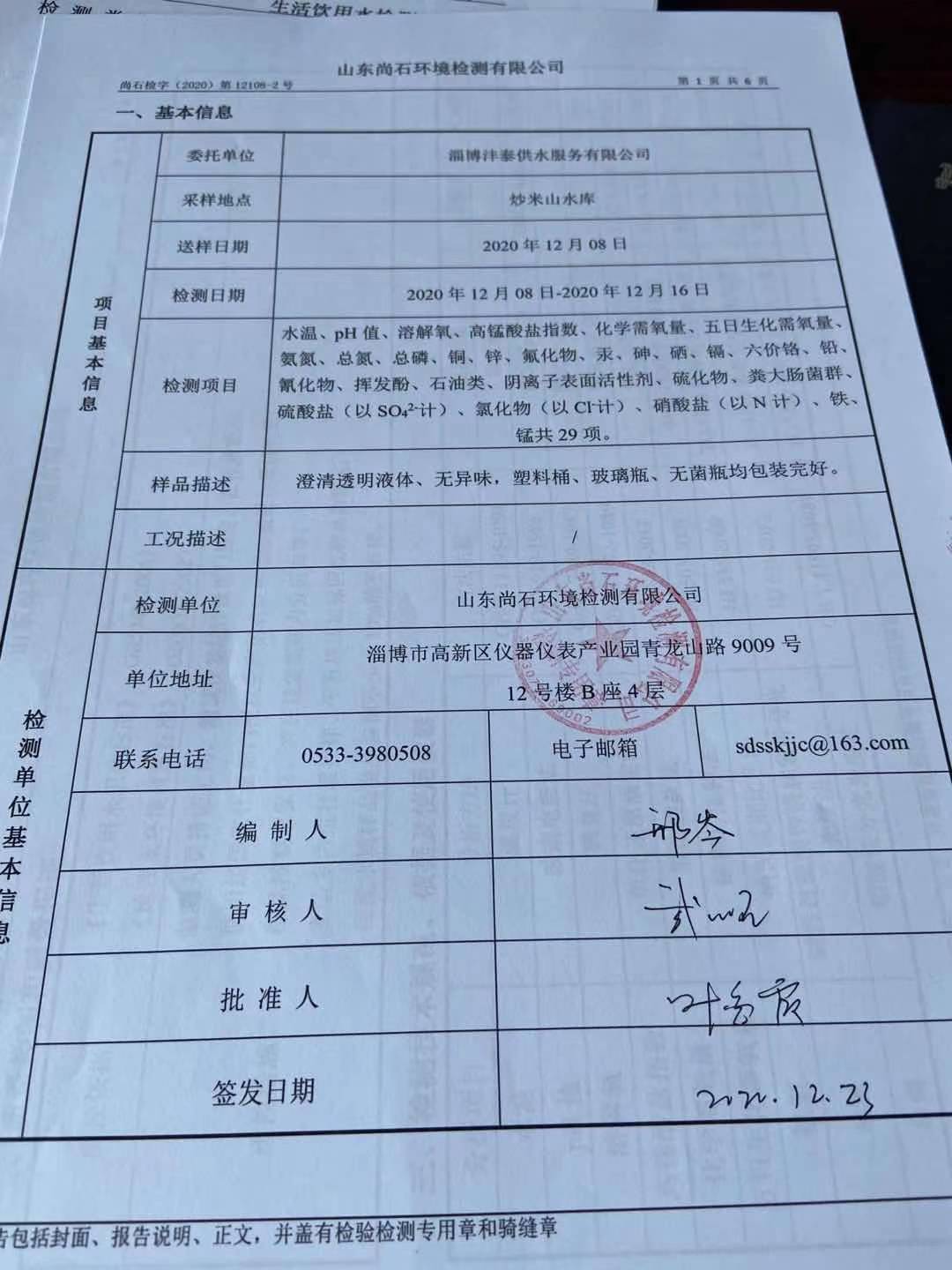 淄博沣泰供水服务有限公司地表水月检报告