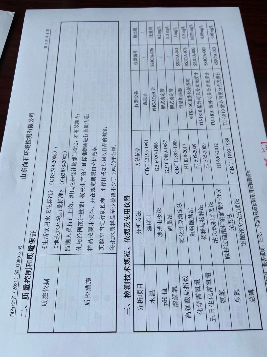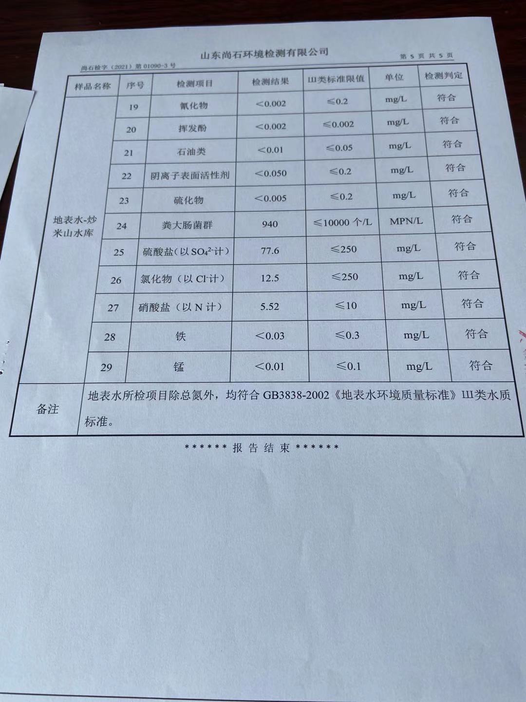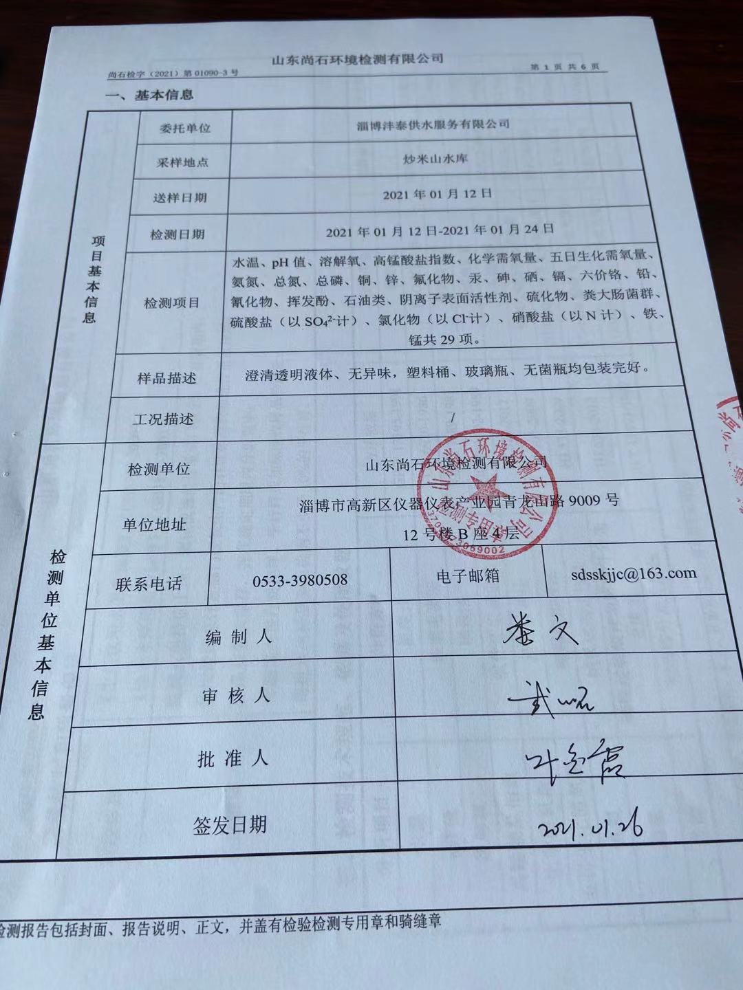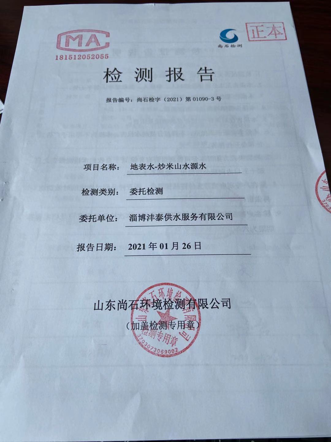 淄博沣泰供水服务有限公司地表水月报表