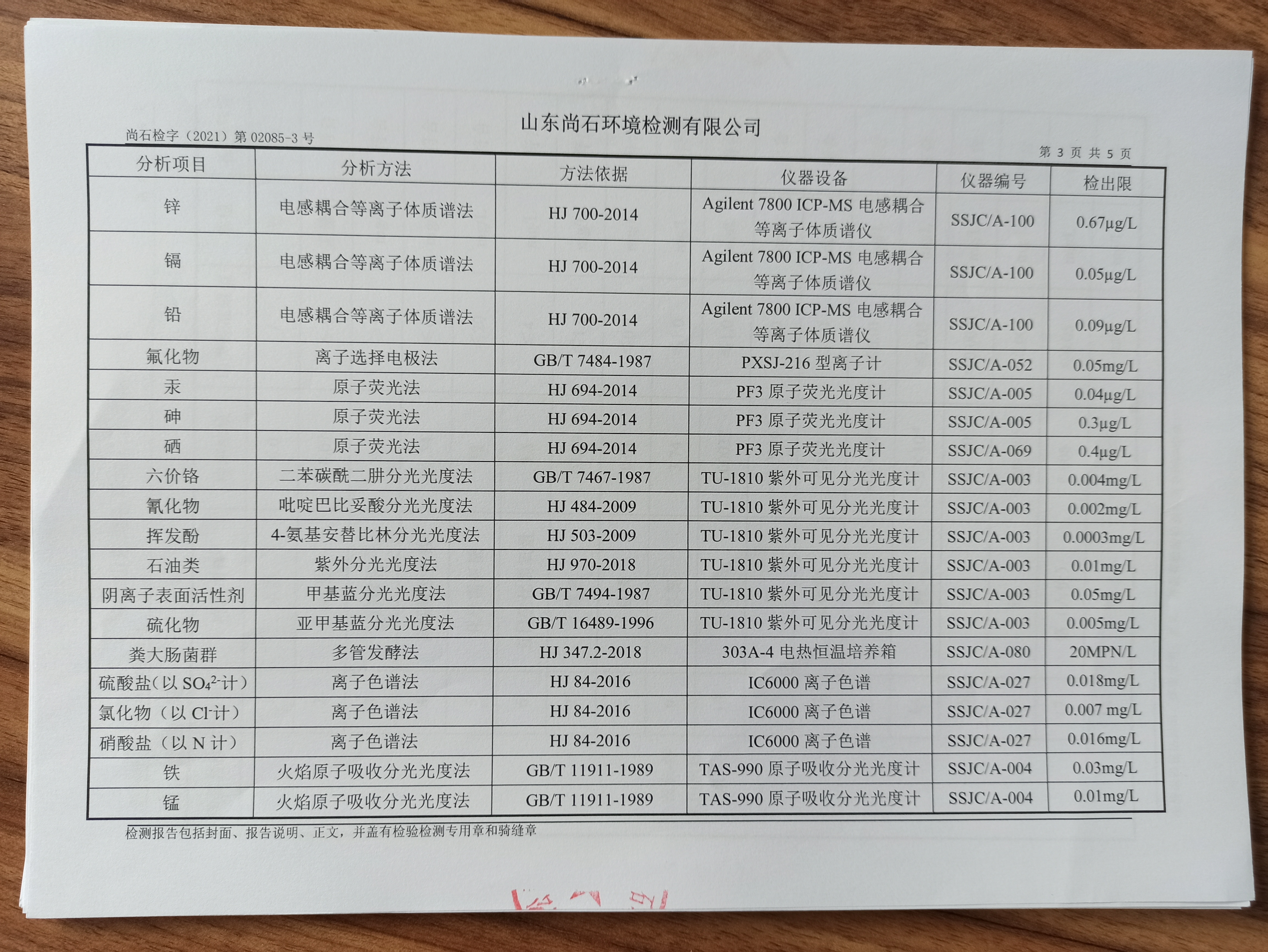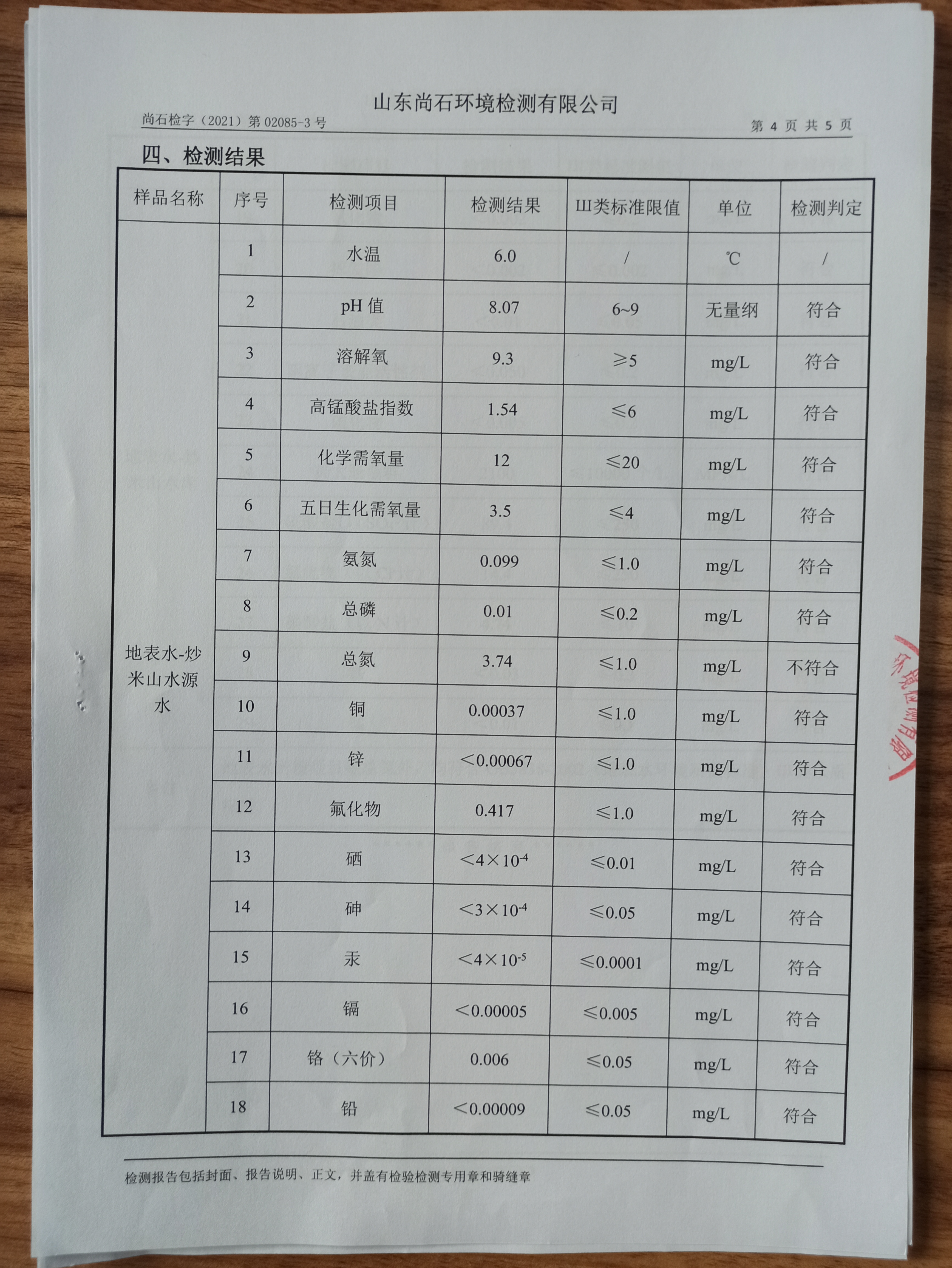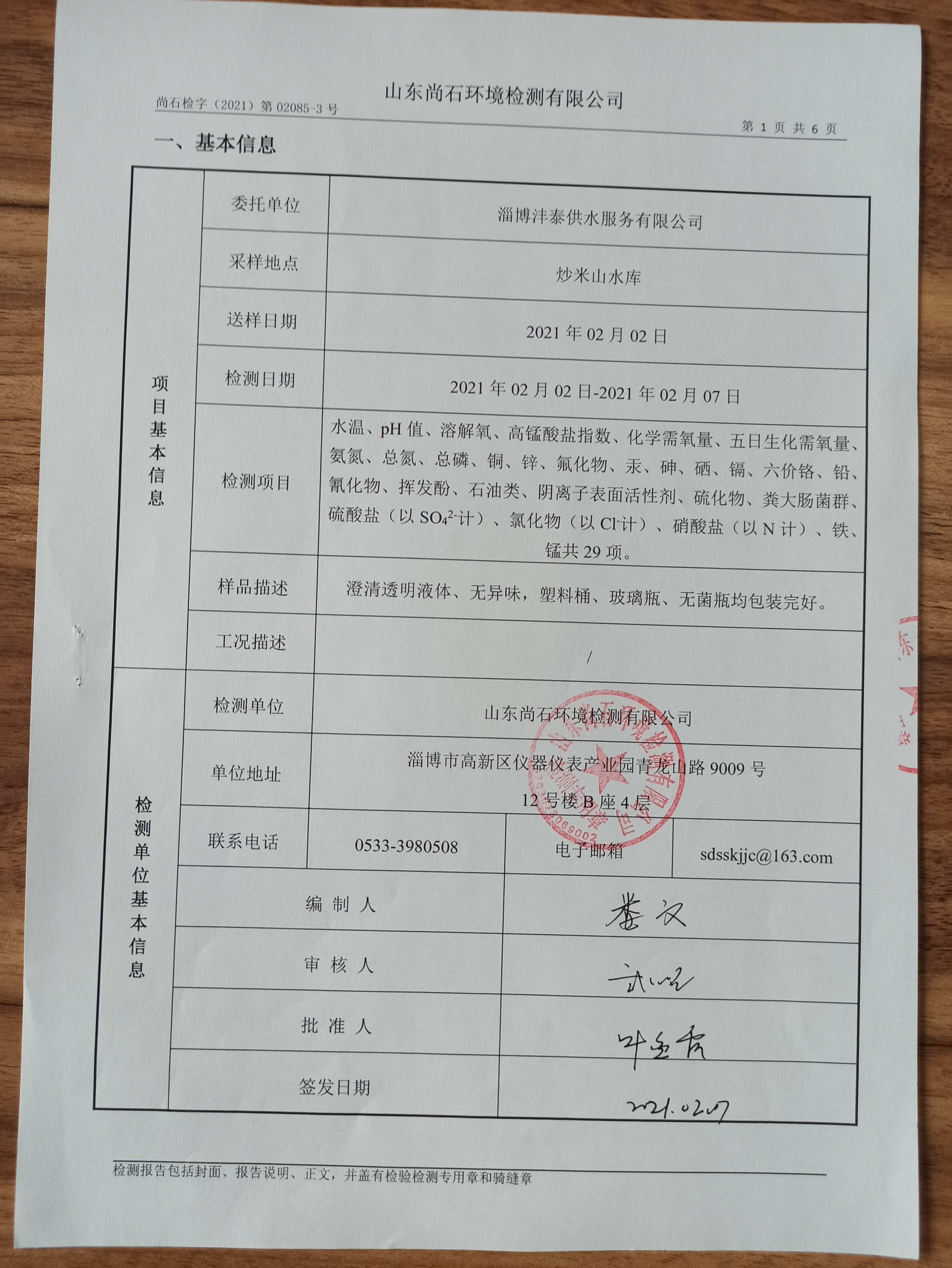 淄博沣泰供水服务有限公司地表水月检报告