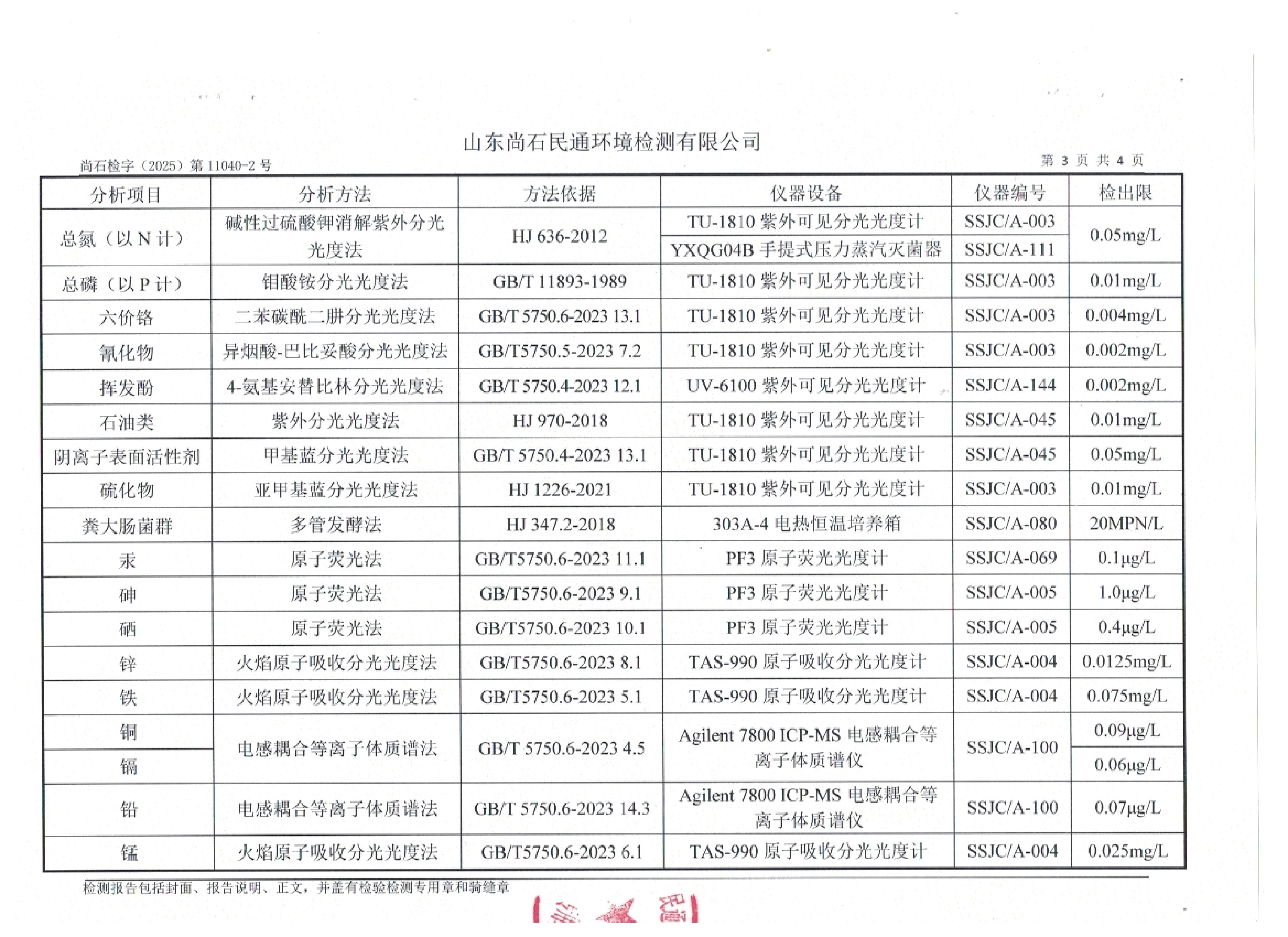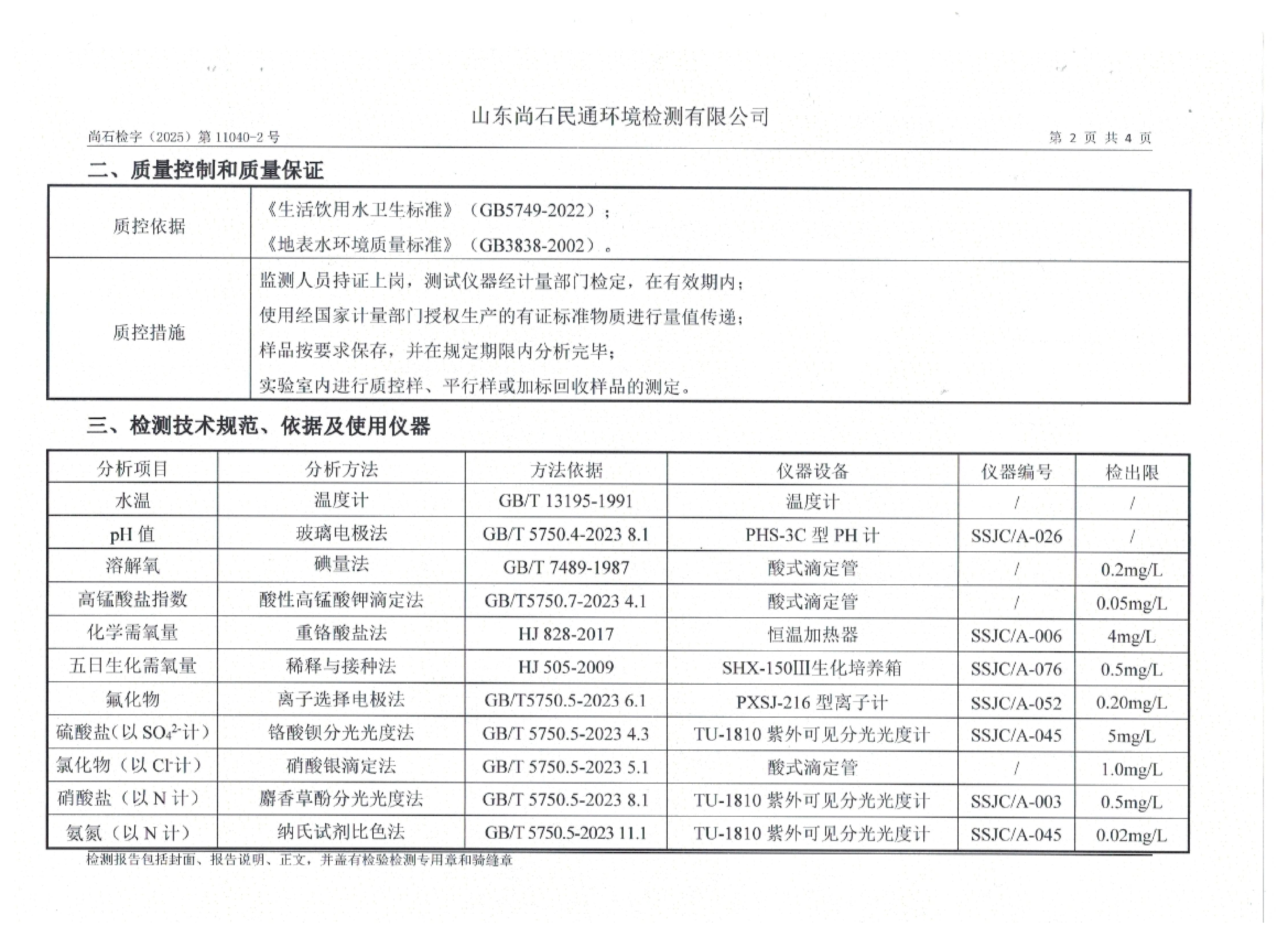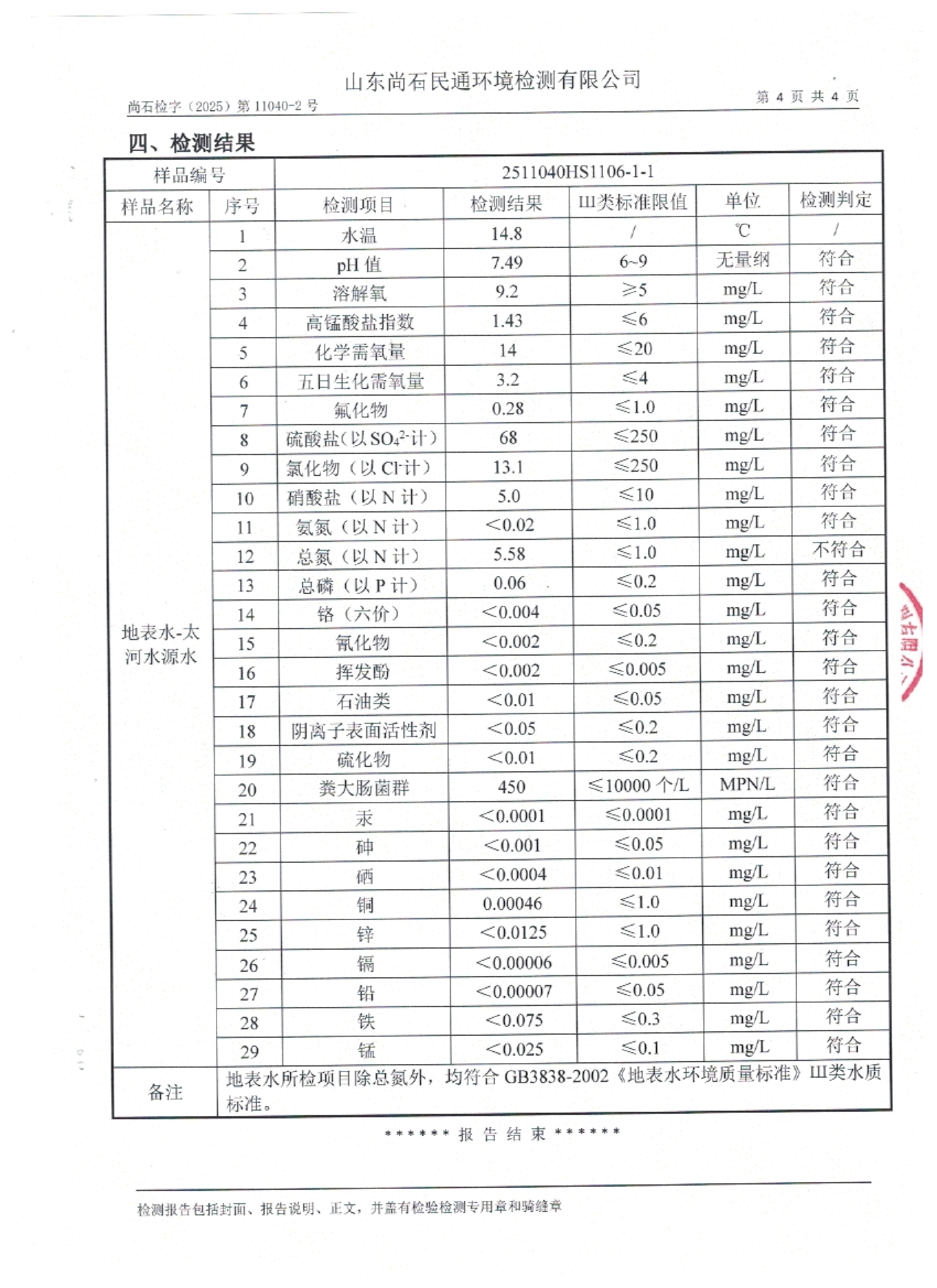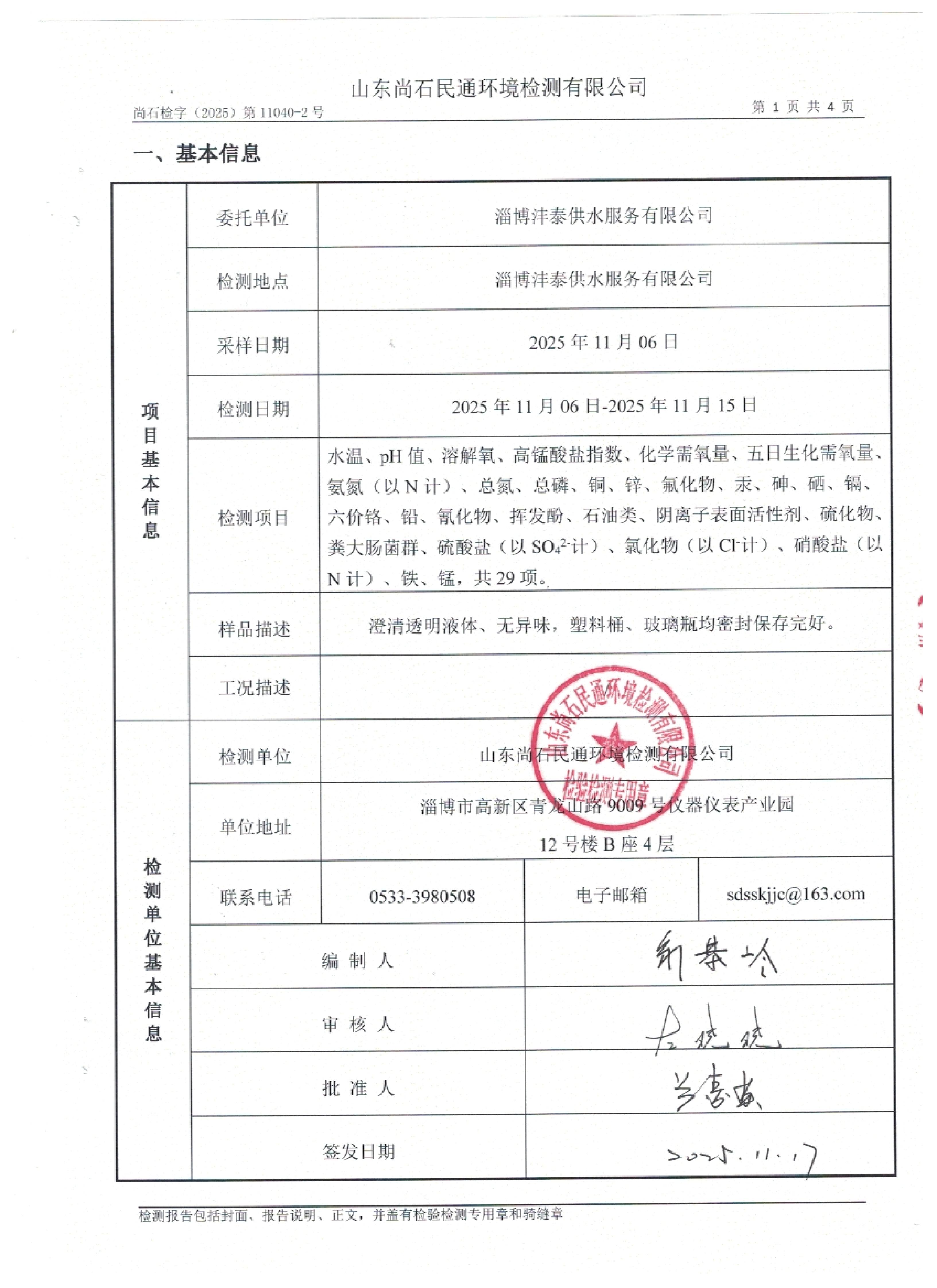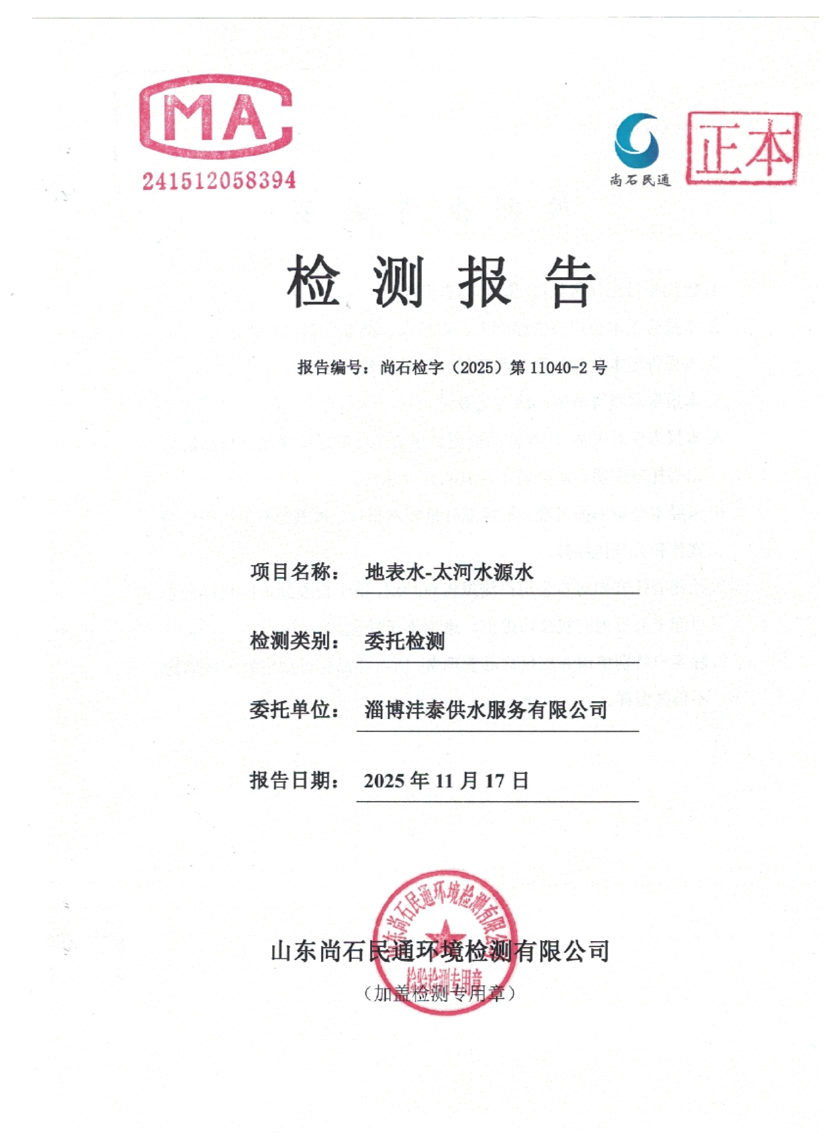 淄博沣泰供水服务有限公司地表水月检报告